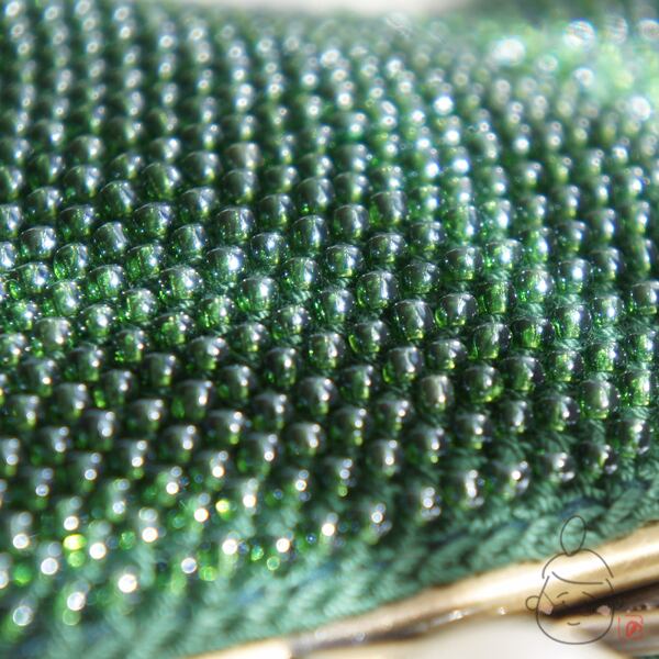 3mmのビーズをひとつぶづつ、全面に編み込みました。