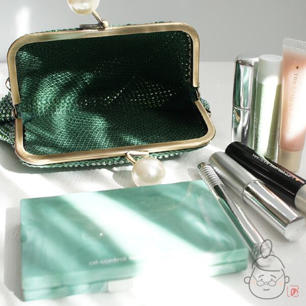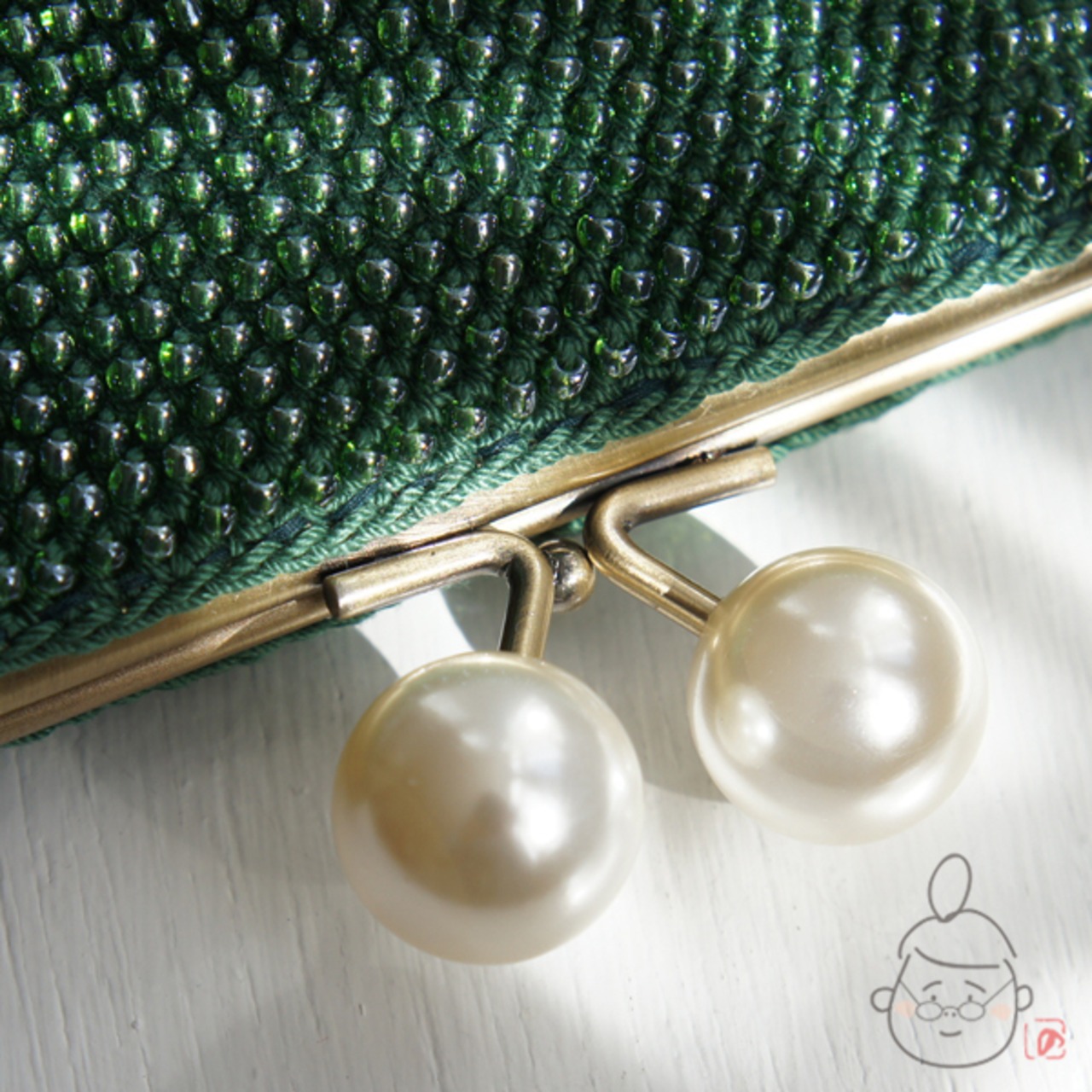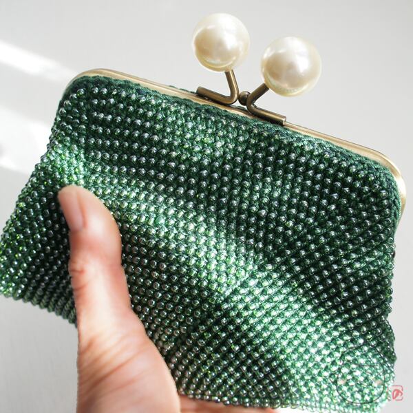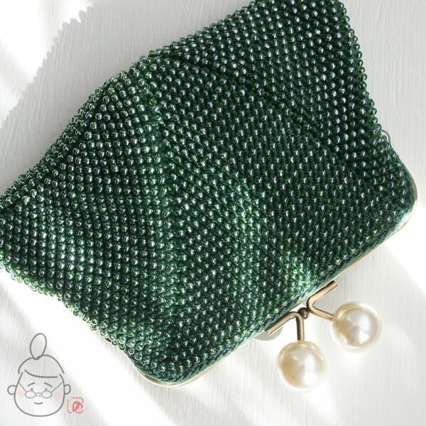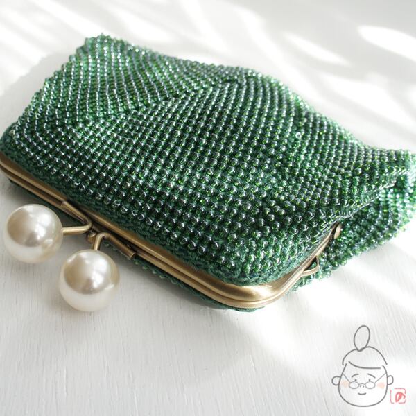 ばあば作☆さらに大きめ☆パールのスクエアがま口(vert foncé・1419)