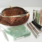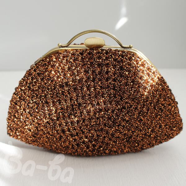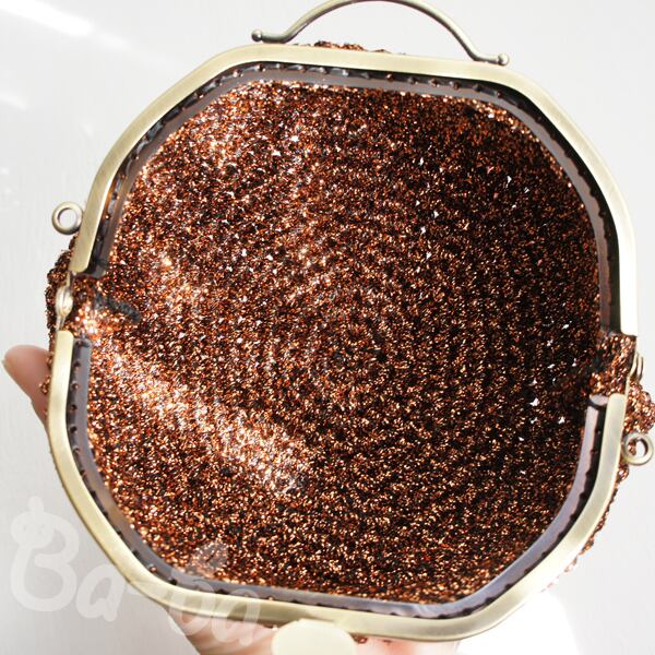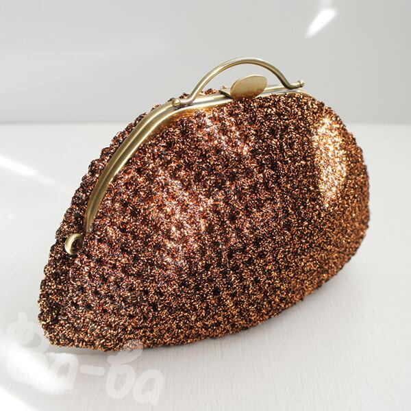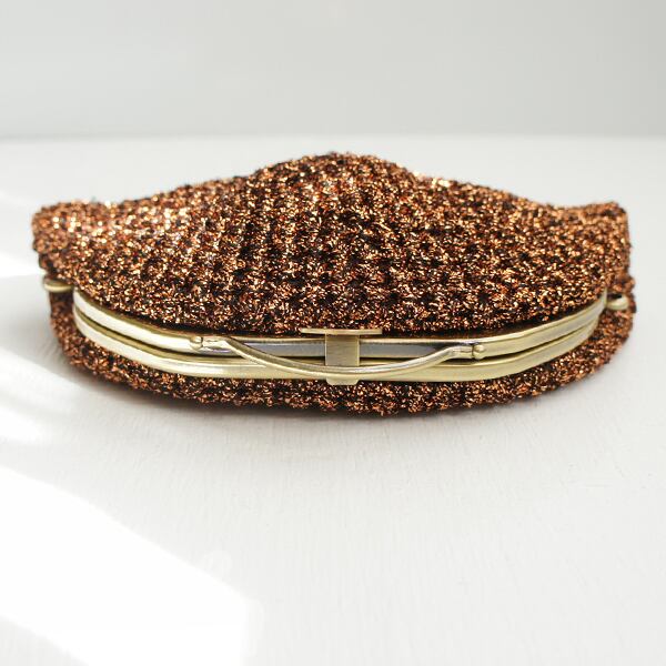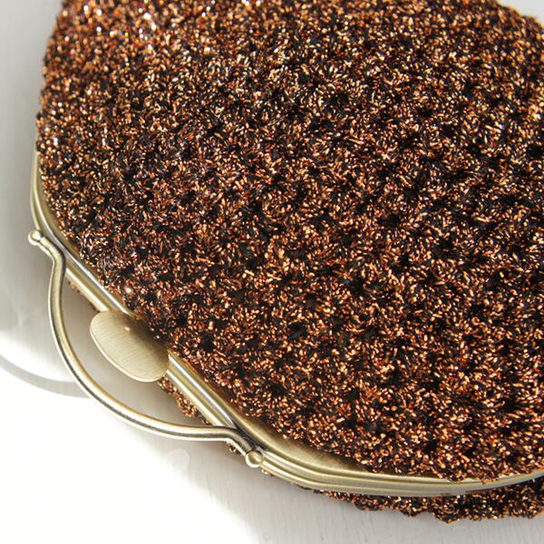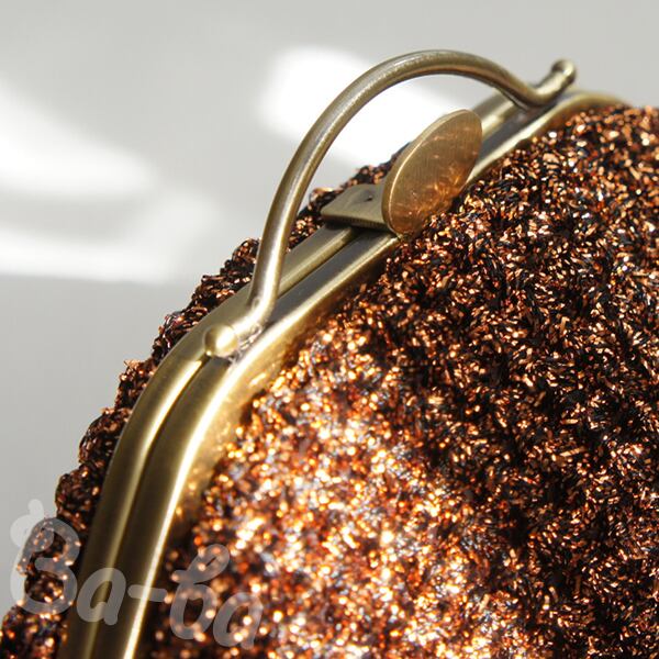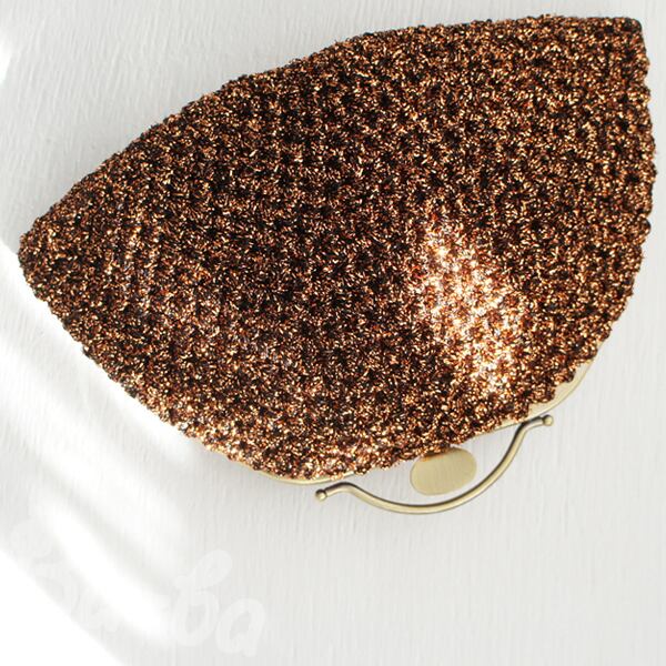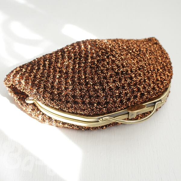 フランス製のラメ糸を細編みにし、ポーチに仕上げました。