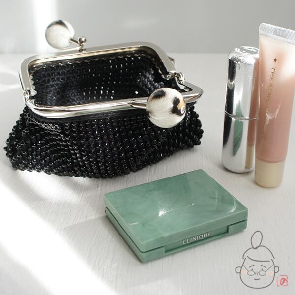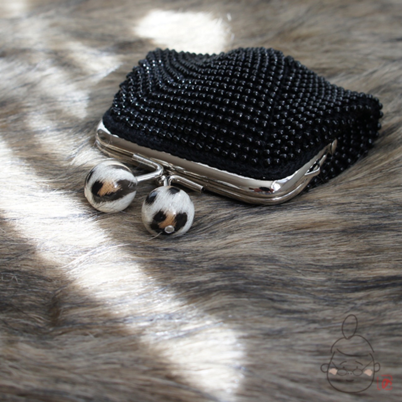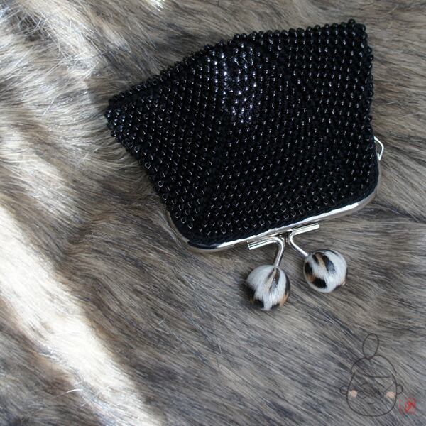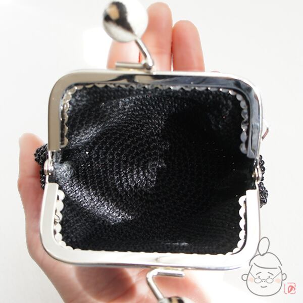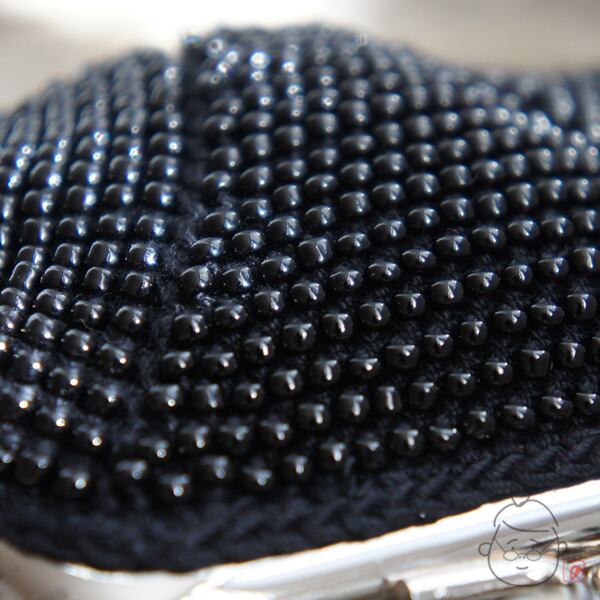 ばあば作☆☆総ガラスビーズのスクエアがま口(schwarz・1409)