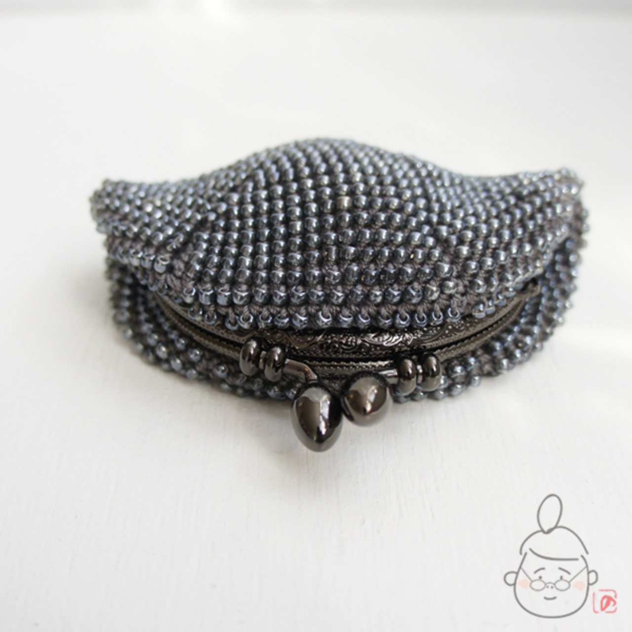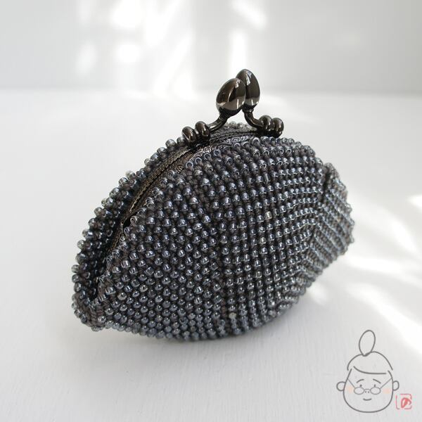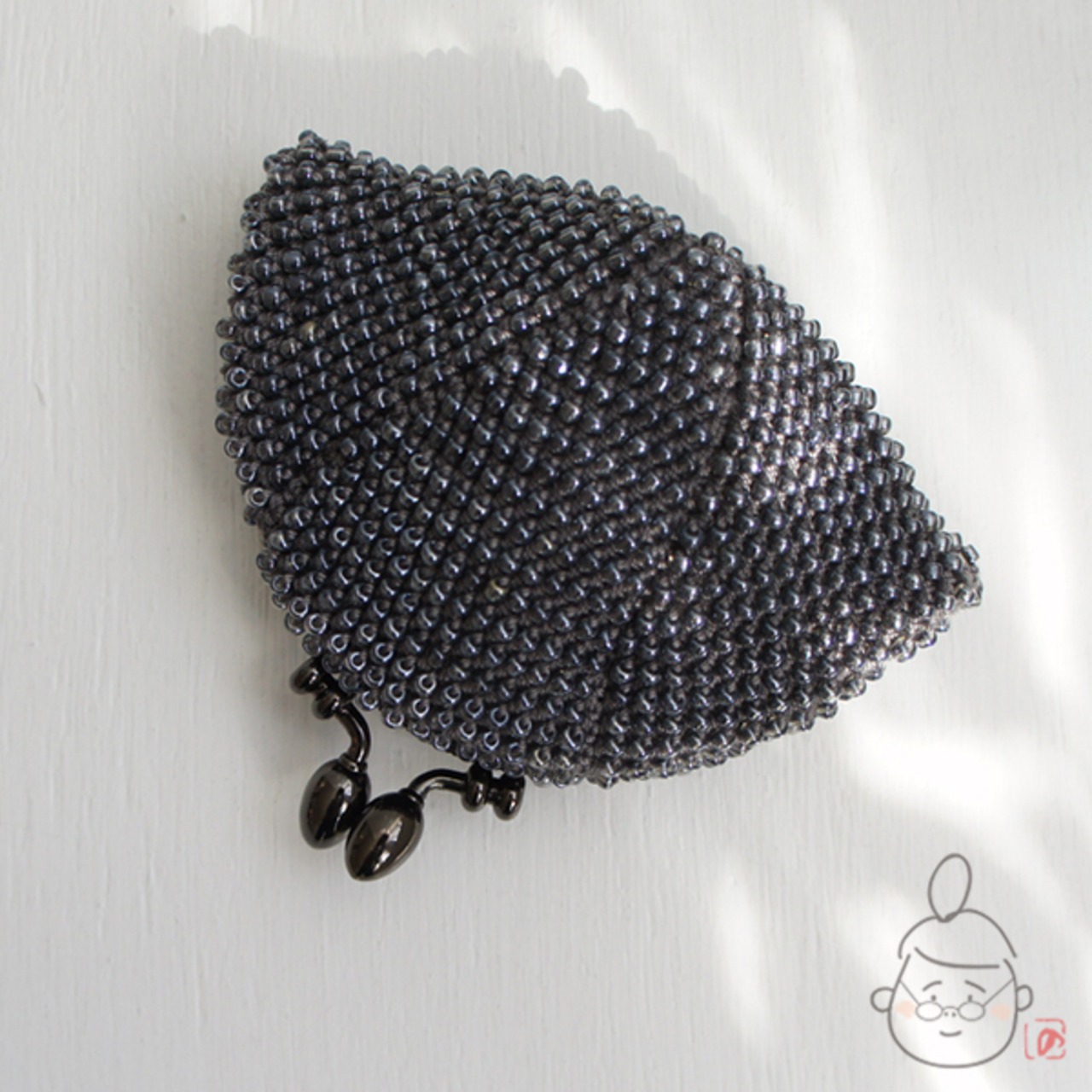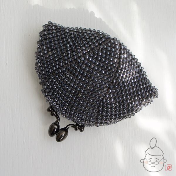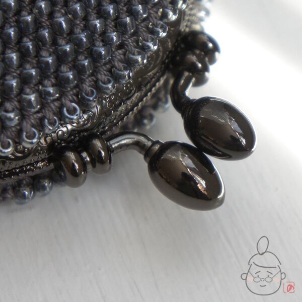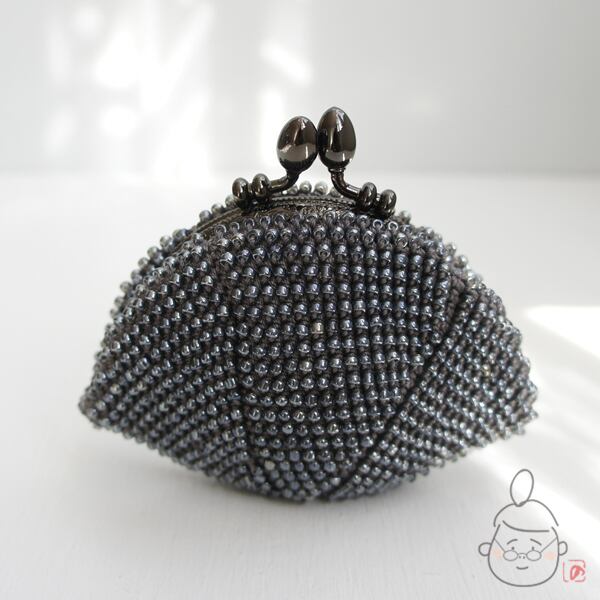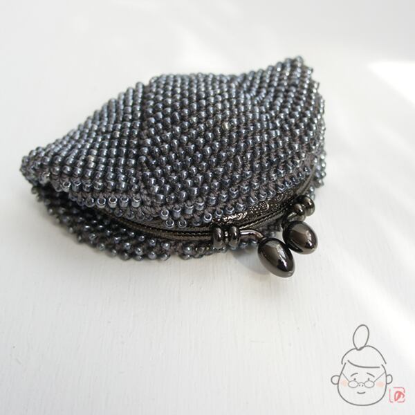 ばあば作☆☆総ガラスビーズのがま口(gris・1416)