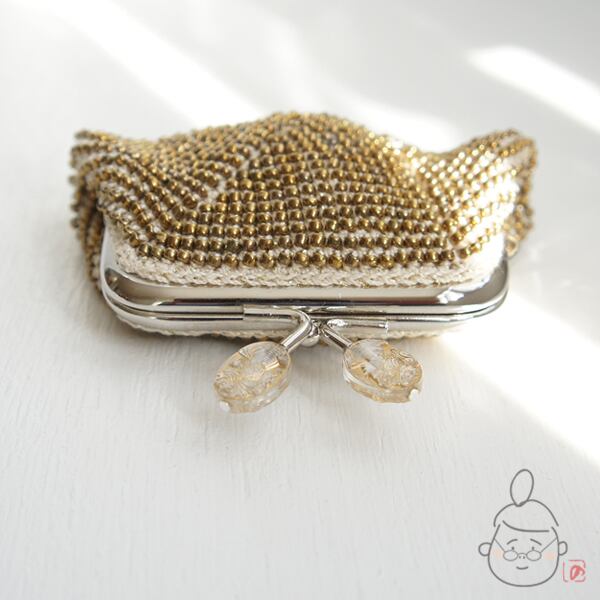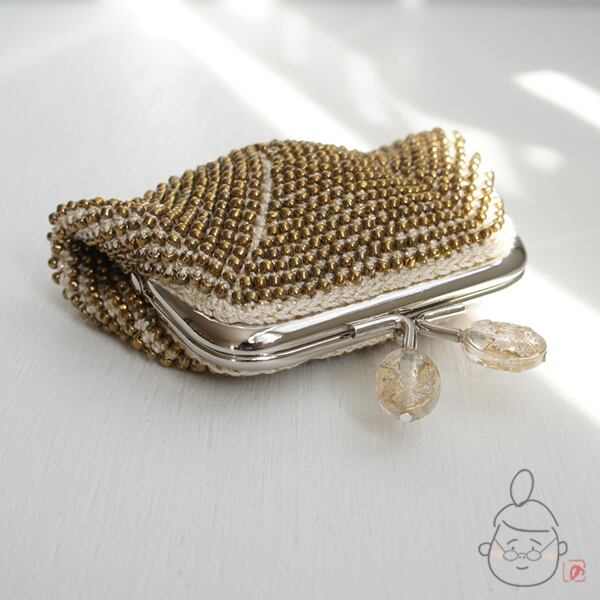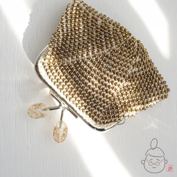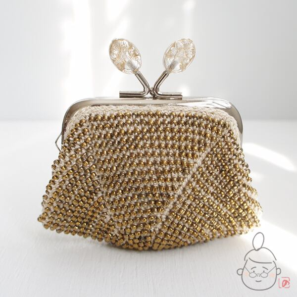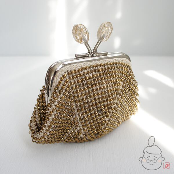 ばあば作☆☆総ガラスビーズのスクエアがま口(d'or・1404)