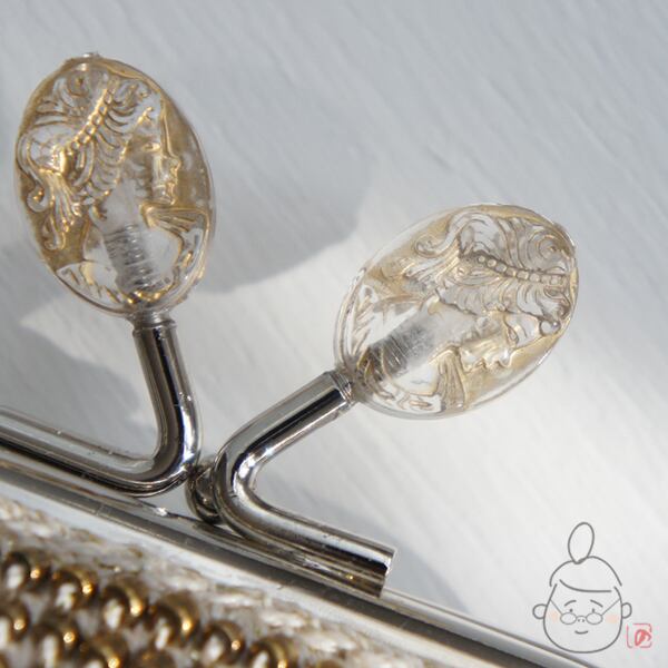 フランスアンティークのようなクリア×ゴールドのカメオ風ビーズをつまみにしました。