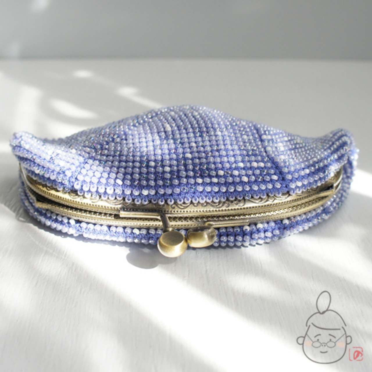 ばあば作☆シードビーズのさらに大きめがま口(fleur mauve・ 1424)