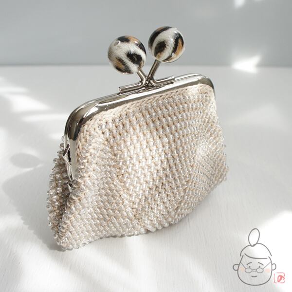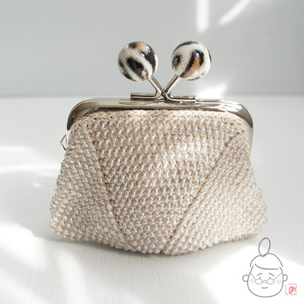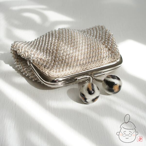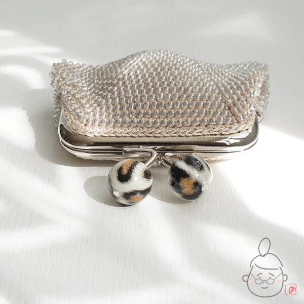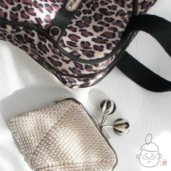 ばあば作☆☆総ガラスビーズのスクエアがま口 (レオパード・1429)