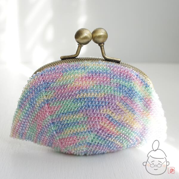ばあば作♪シードビーズの大きめがま口(pastel・1403)