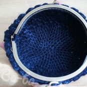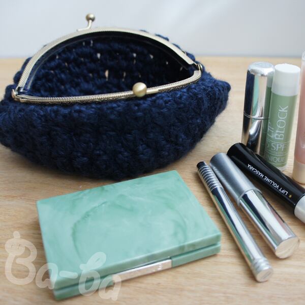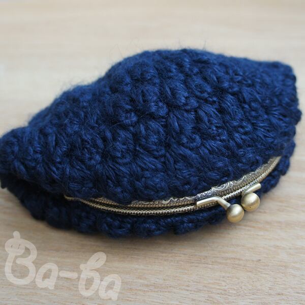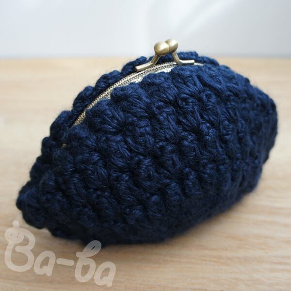 リネン混紡糸の「パプコーン編み」編み地をがま口に仕上げました。