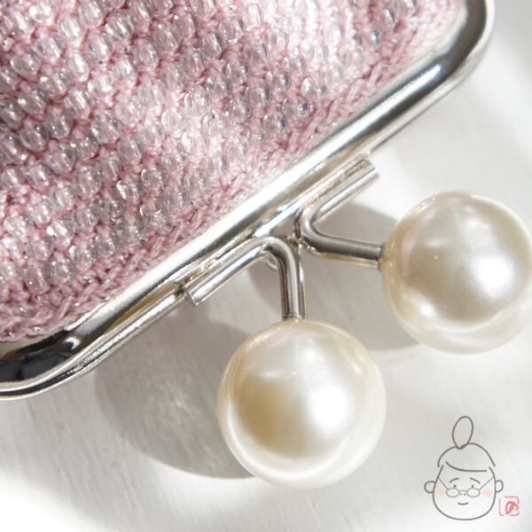ばあば作☆☆総ガラスビーズの「大きめパール」スクエアがま口(rose・1436)