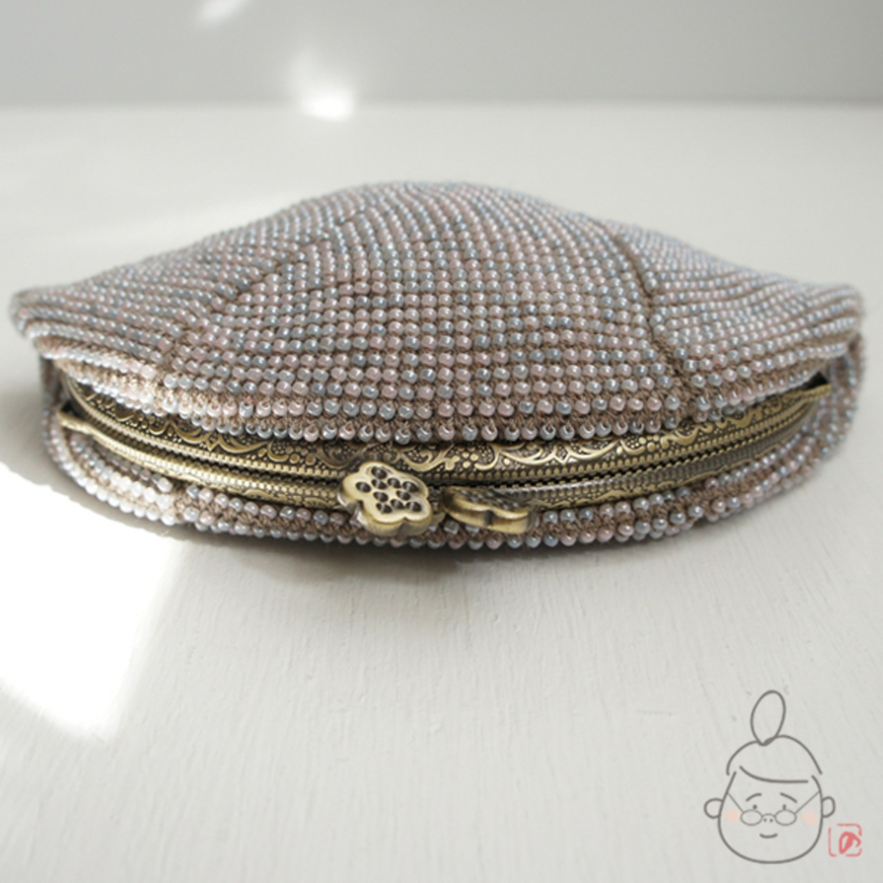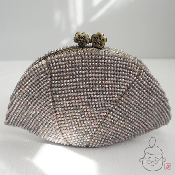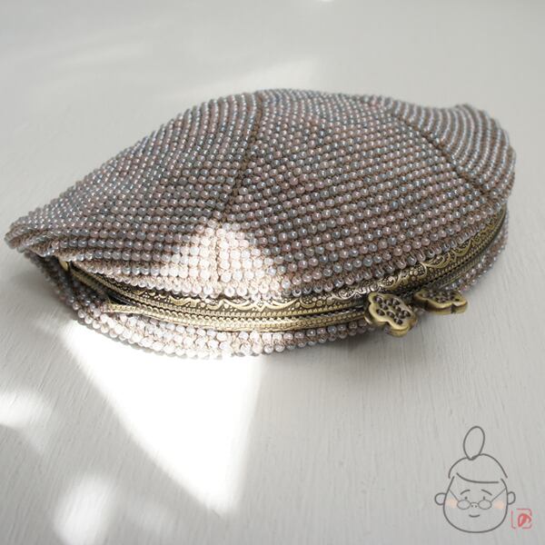 2mmの日本製シードビーズをひとつぶづつ全面に編み込んだ上質ながま口です。