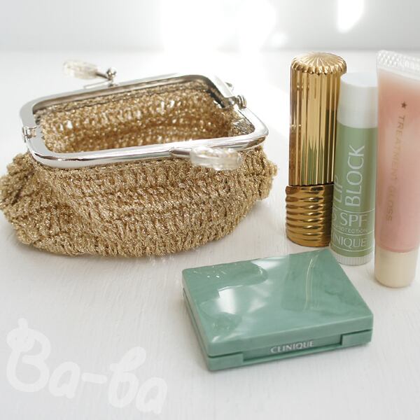手のひらになじむくたっとやわらかい長編みの編み地を、がま口に仕上げました。