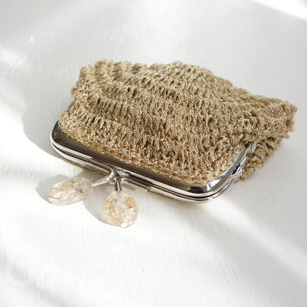 つまみと同じトーンの金色糸をソフトに編み上げました。