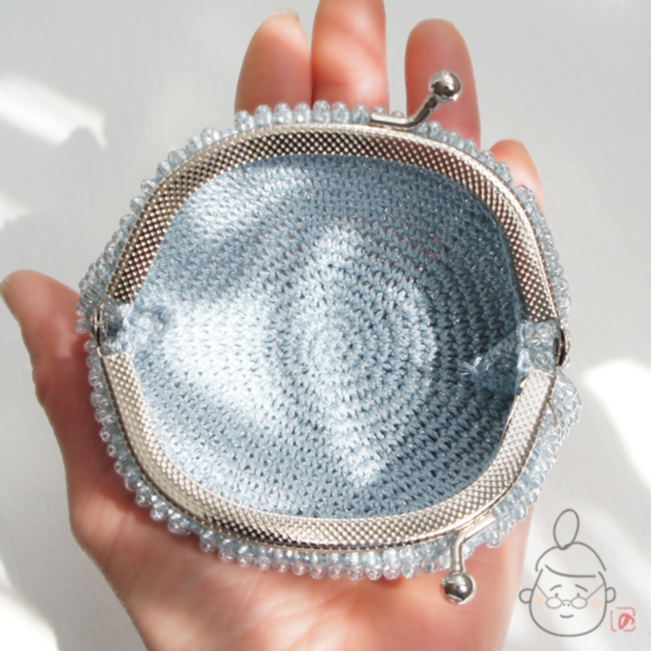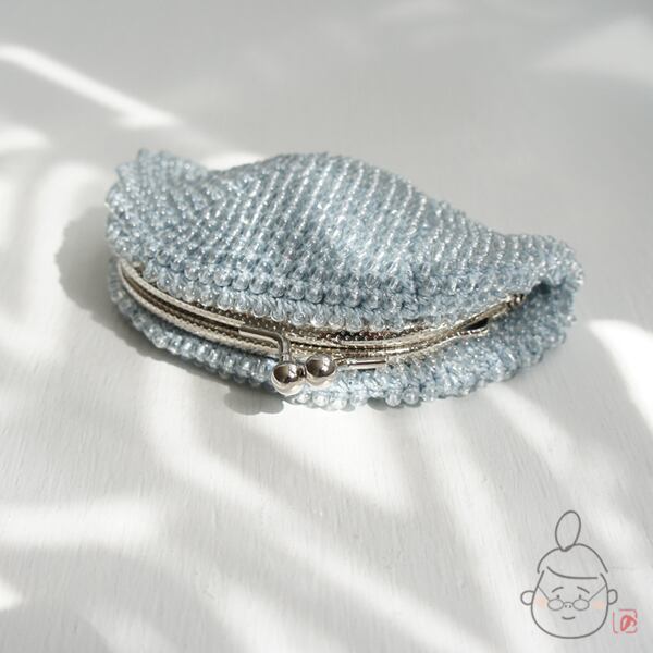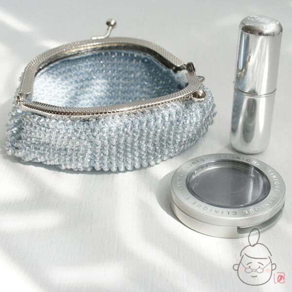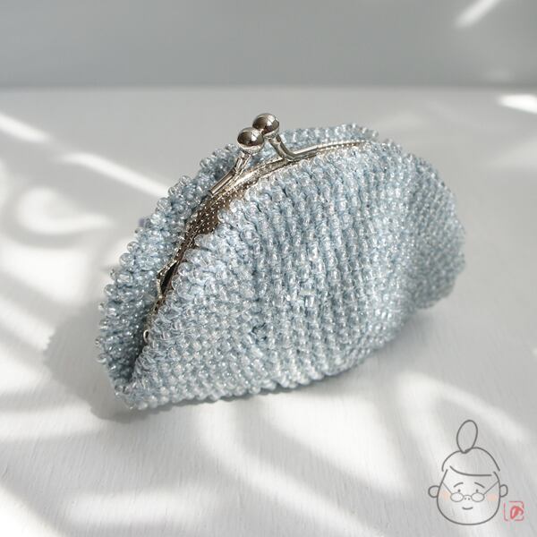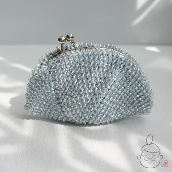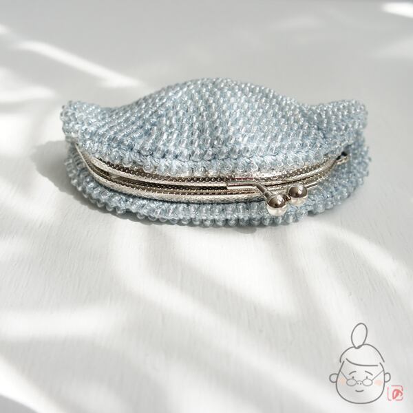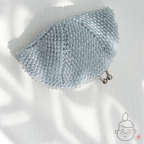 ばあば作☆☆総ガラスビーズのがま口(みずいろ・1438)