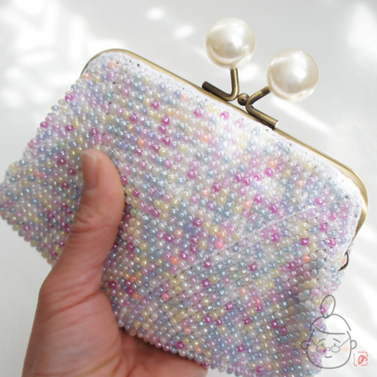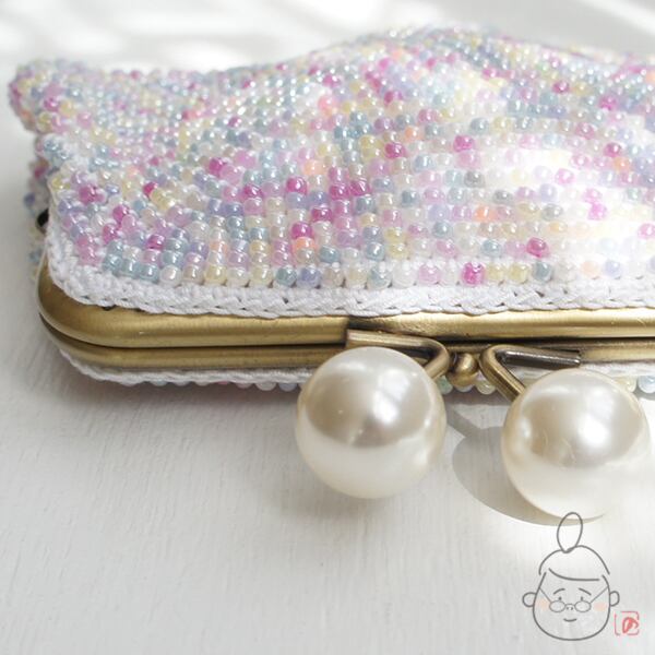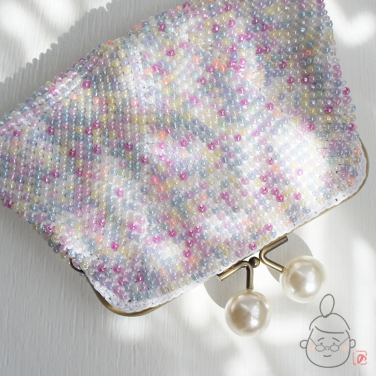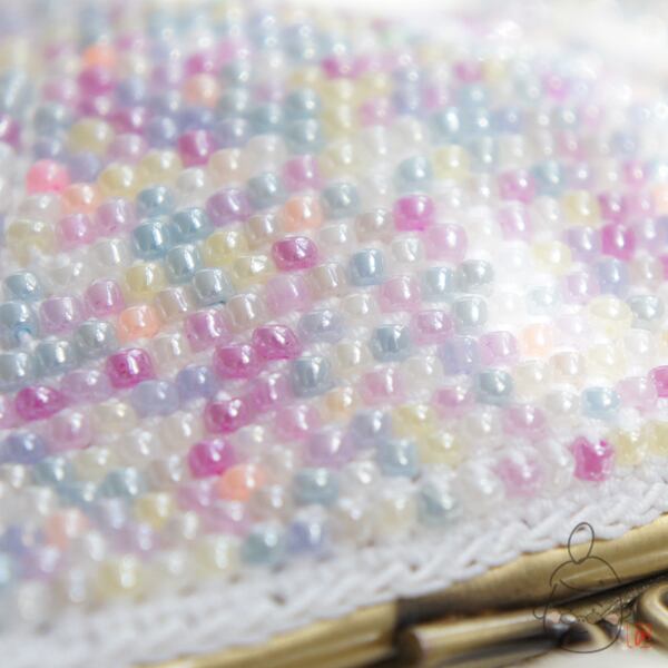 3mmパステルカラーのビーズをひとつぶづつ、全面に編み込みました。