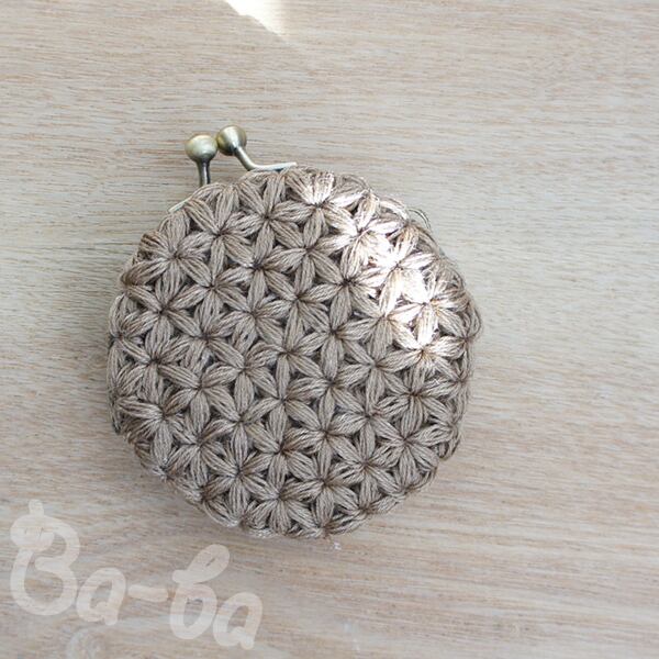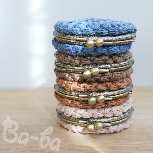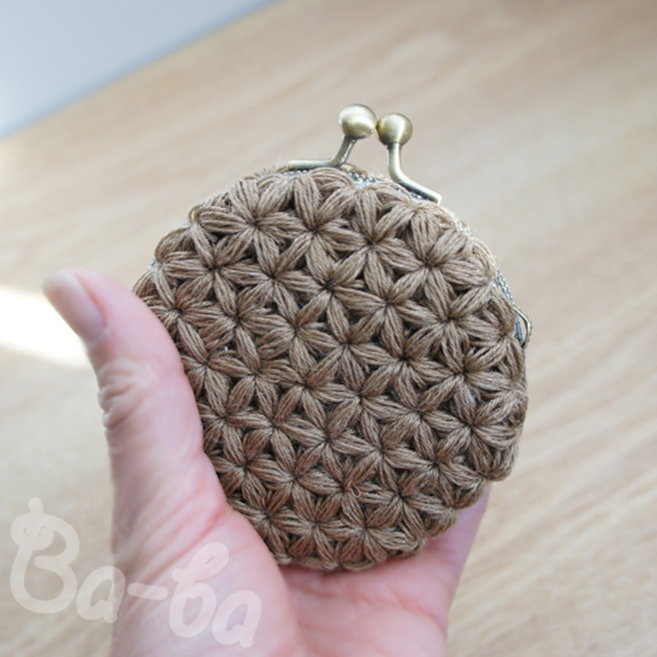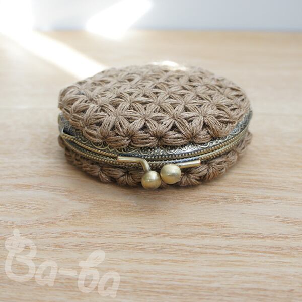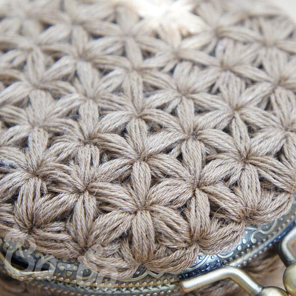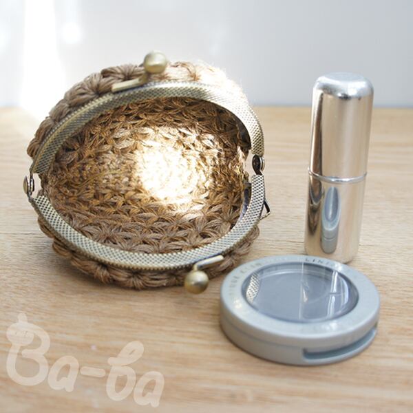 落ち着いたブラウンベージュの麻混紡糸をふんわりと編み上げ、シンプルな口金と組み合わせました。
