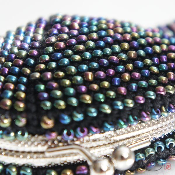 キラキラと多色に輝く3mmのガラスビーズを全面に編み込みました。