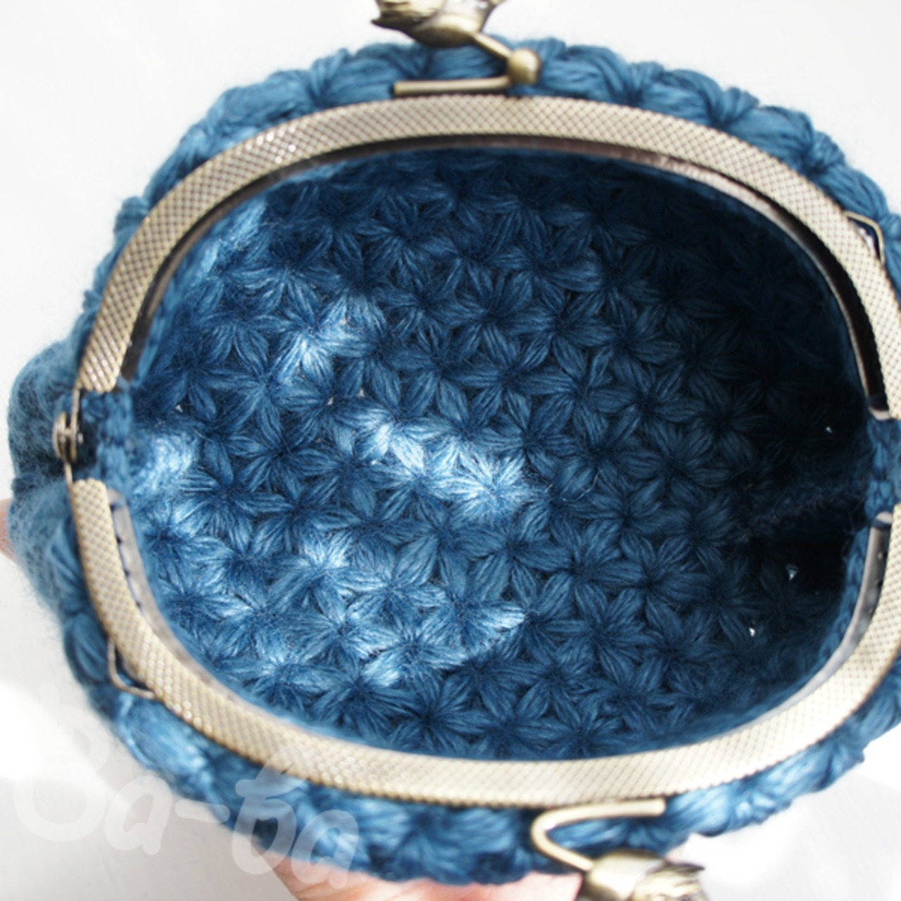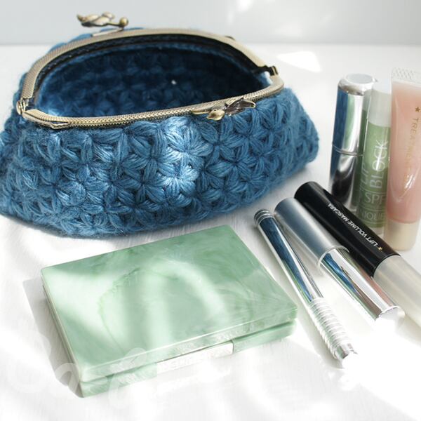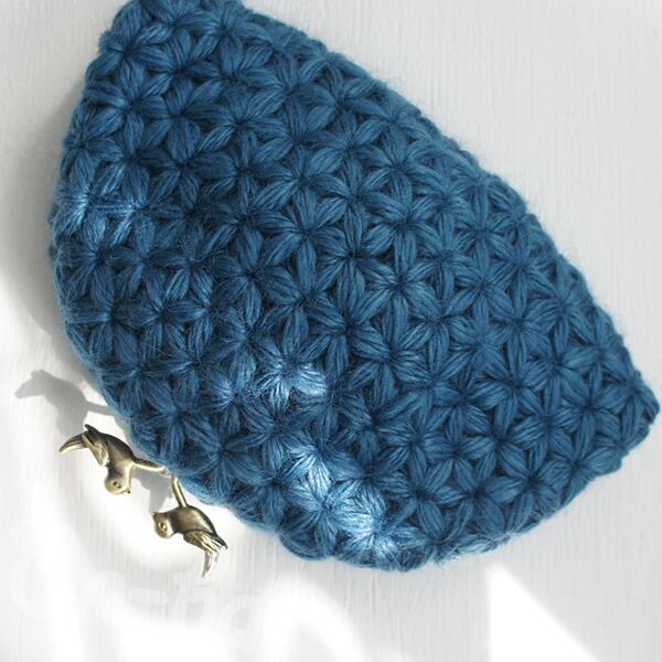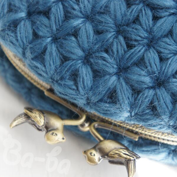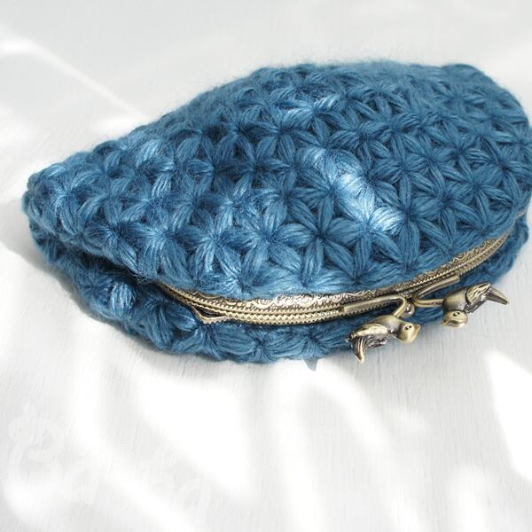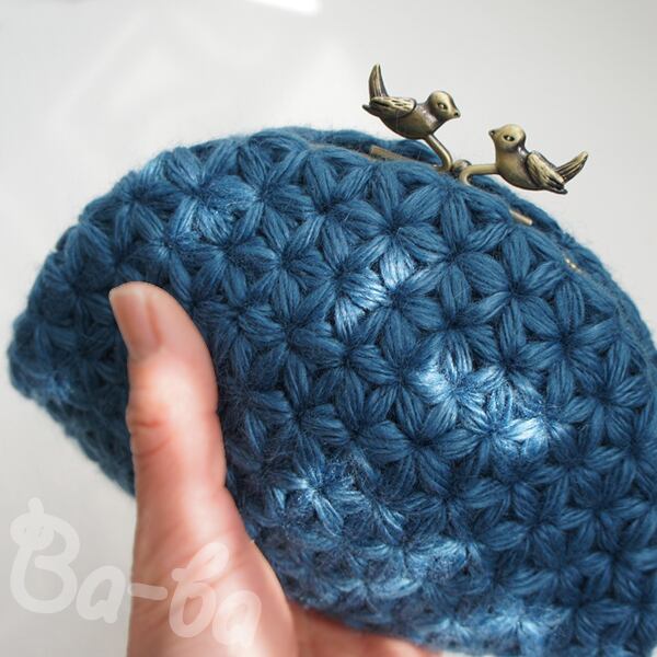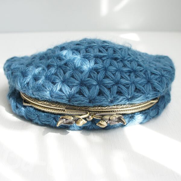 ばあば作・リフ編みのがま口ポーチ(あおいそら・C1426)