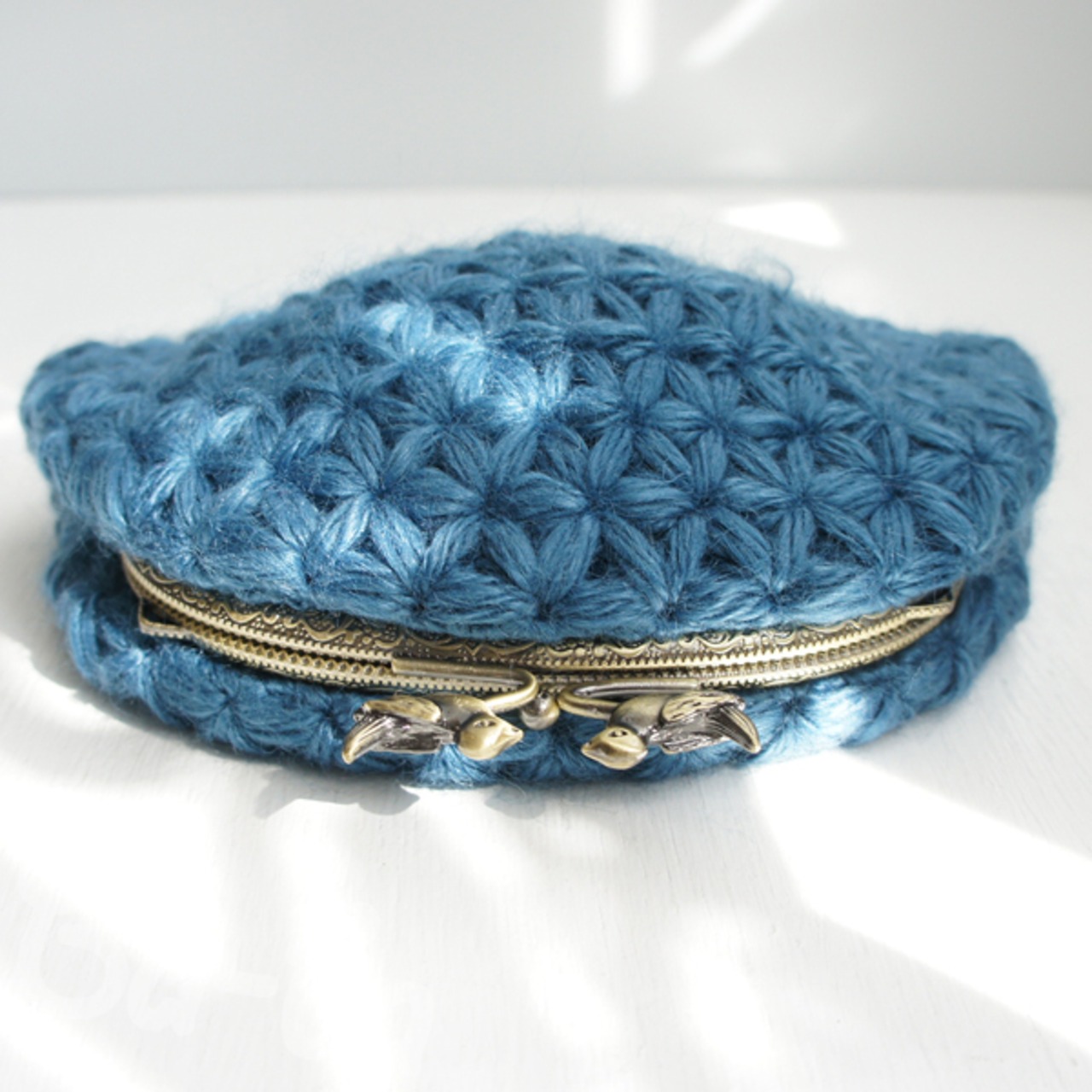 小鳥つまみの口金でほんわかポーチに仕上げました。