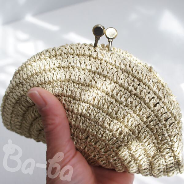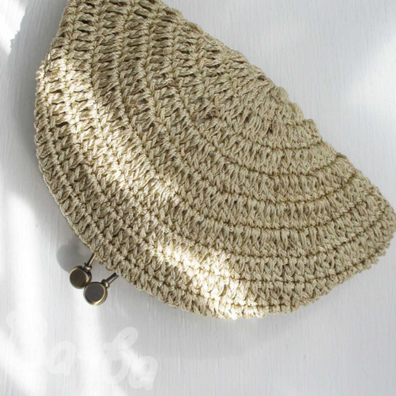 手のひらになじむくたっと柔らかい長編みの編み地を、がま口に仕上げました。