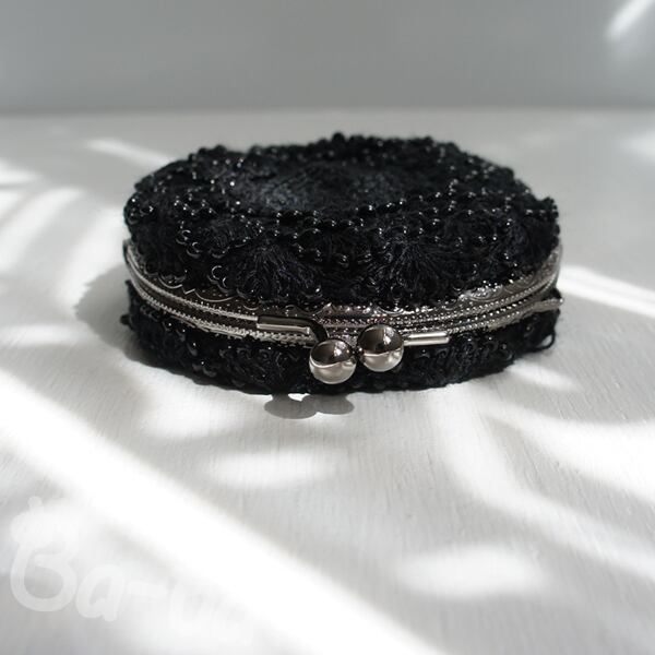 口金 : 柄入りメタルブラック、8.5cm、丸型、片カン