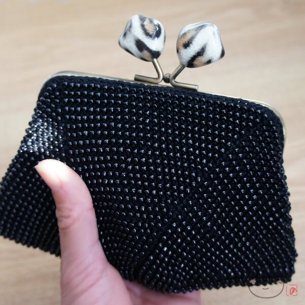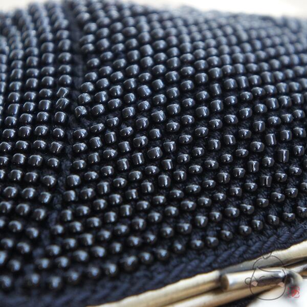 ばあば作☆☆さらに大きめ・ガラスビーズのがま口(noir chic・1377)