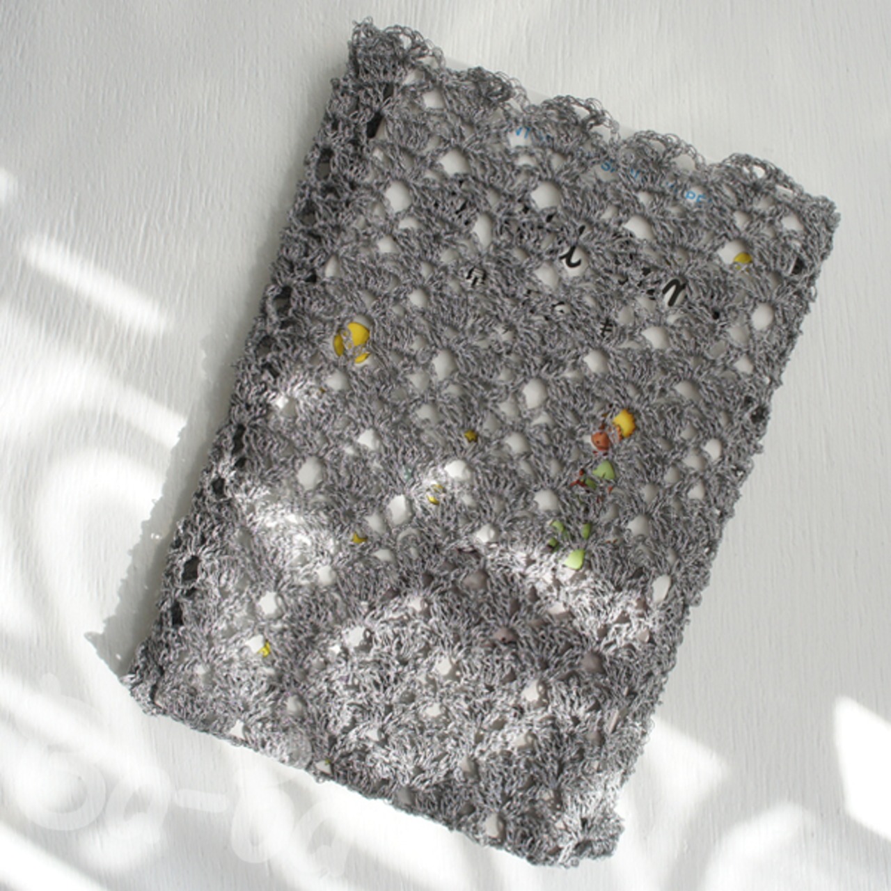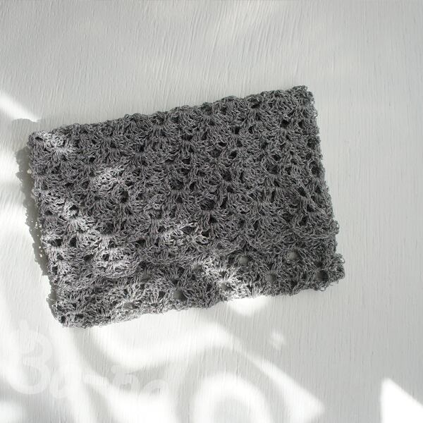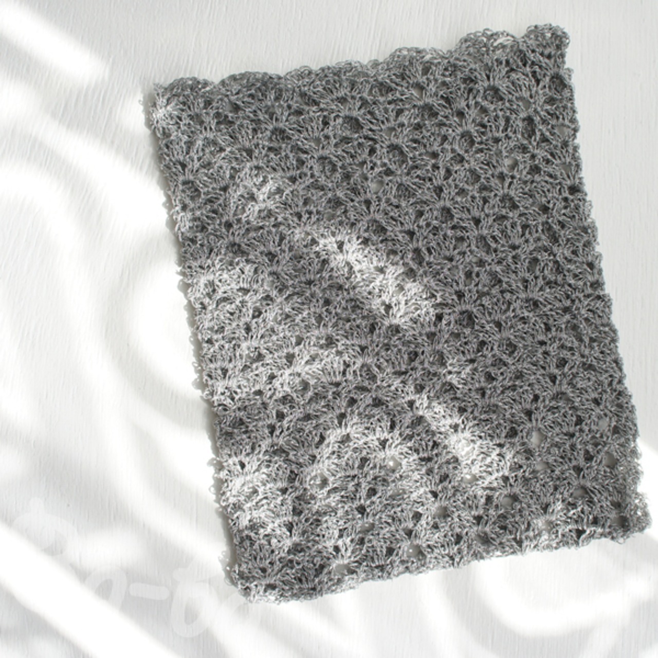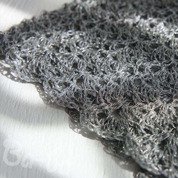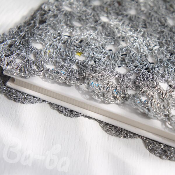 銀色の混紡糸をかぎ針で透かし編みにしました。