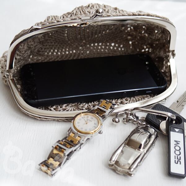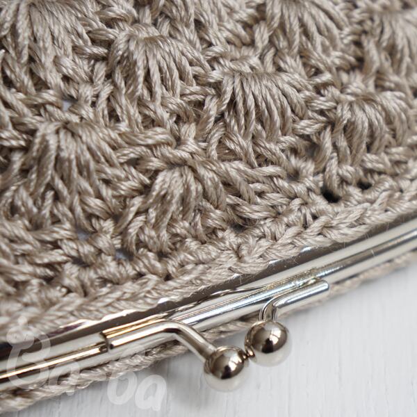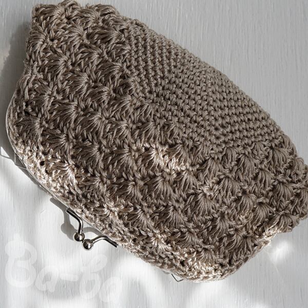 ばあば作、松編みのがまぐちポーチ(sable・C1439)
