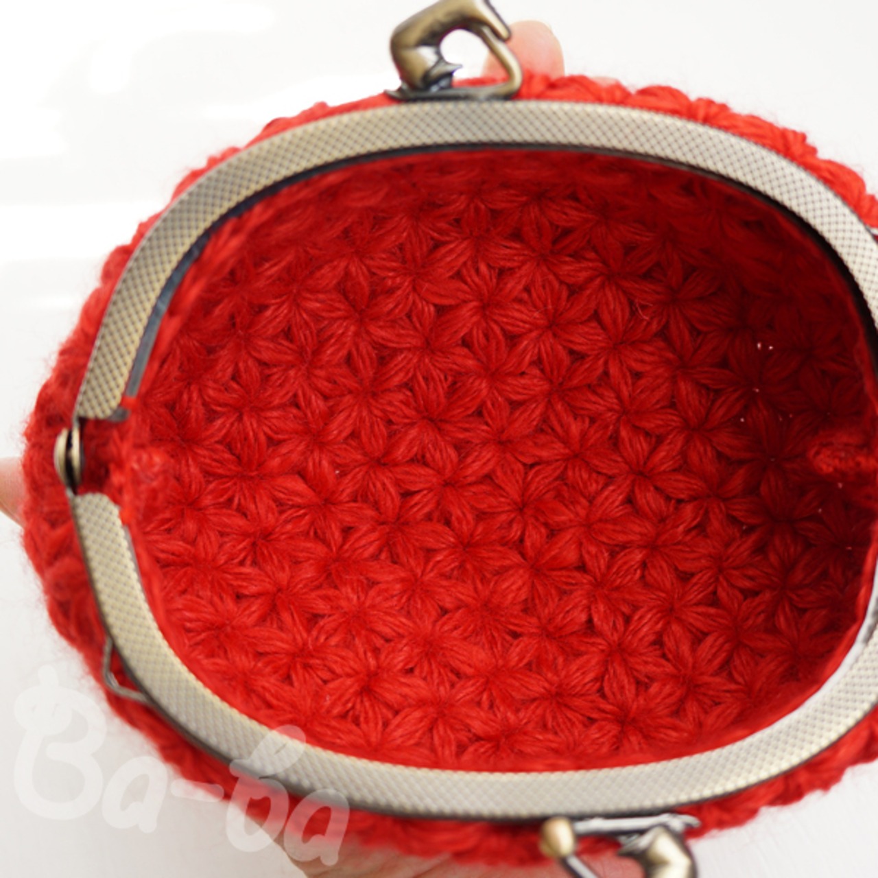 縫いつけ口金を使用し、本体としっかり固定しています。