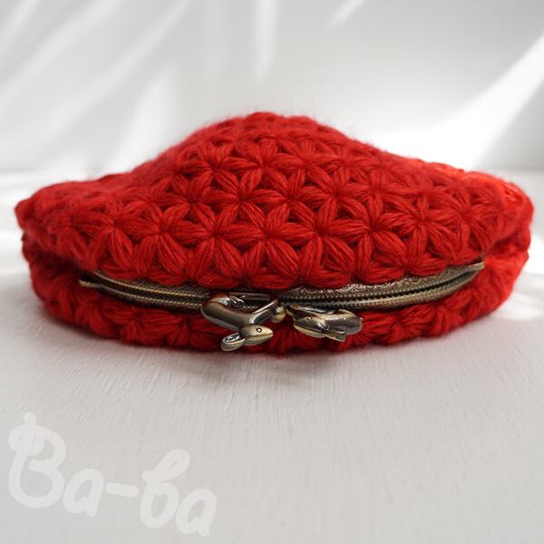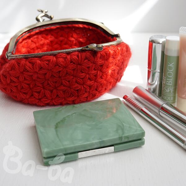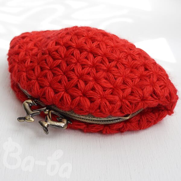 ばあば作・リフ編みのがま口ポーチ(salvia・C1437)
