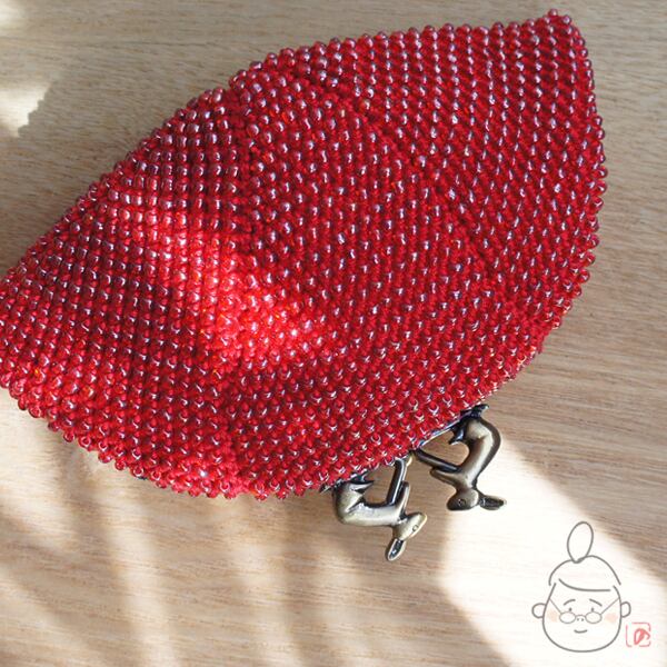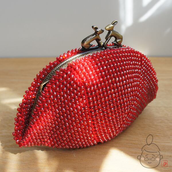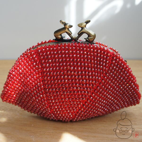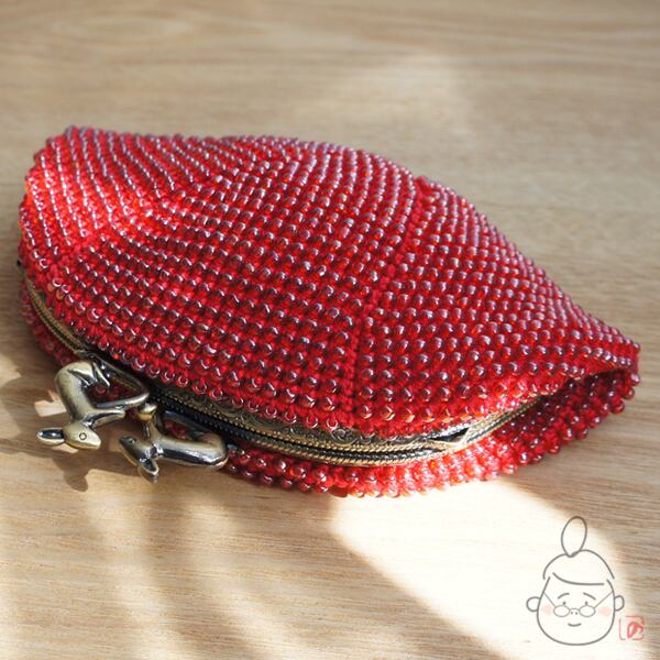 ばあば作☆☆さらに大きめビーズのうさぎがま口(pomegrante・1434)