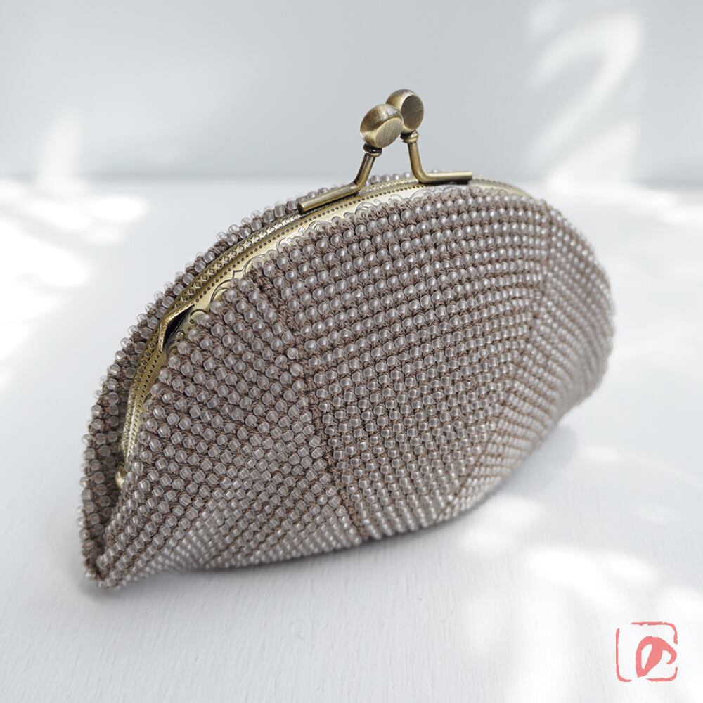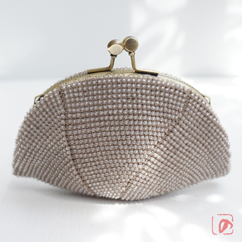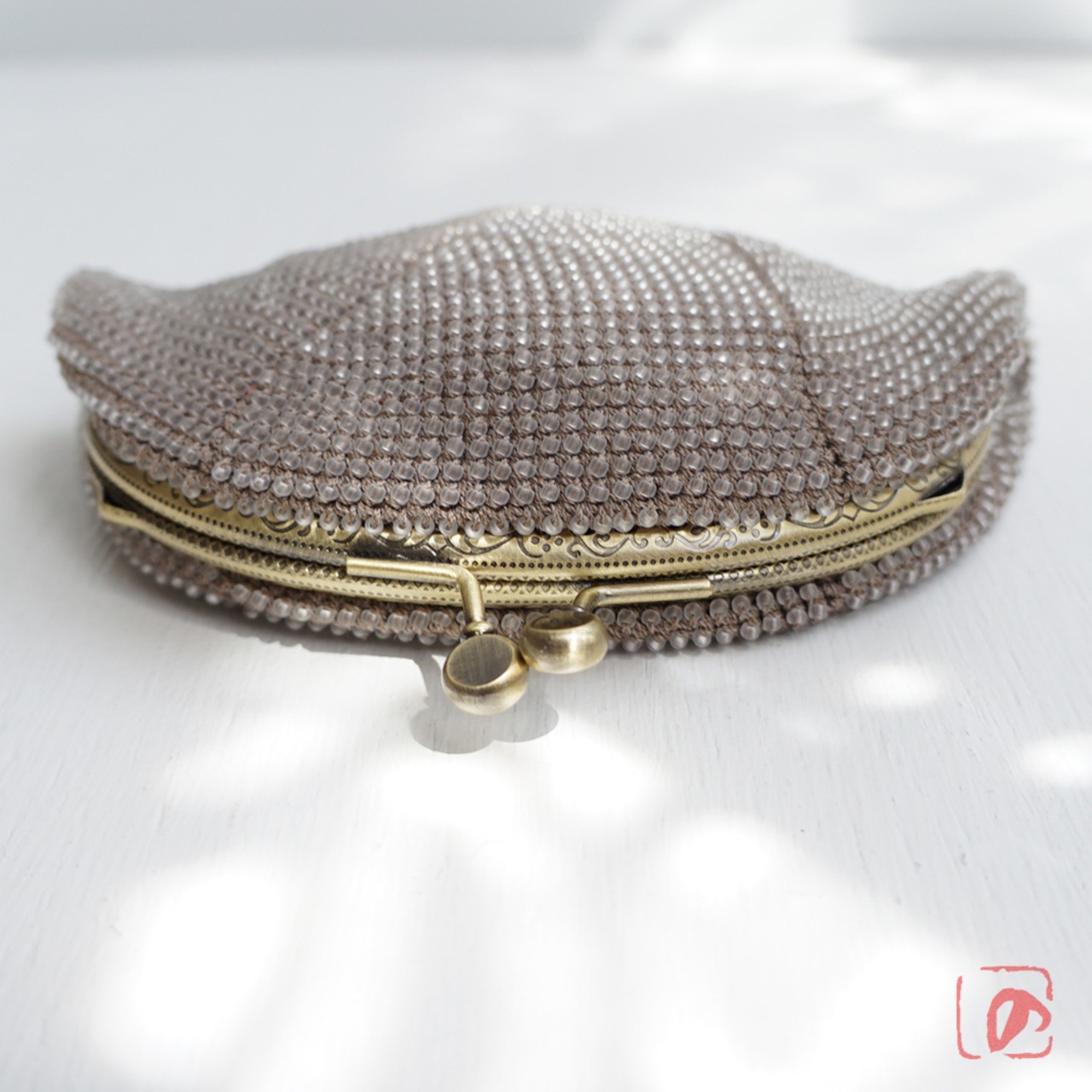 ばあば作☆シードビーズのさらに大きめがま口(frostbeige・1458)
