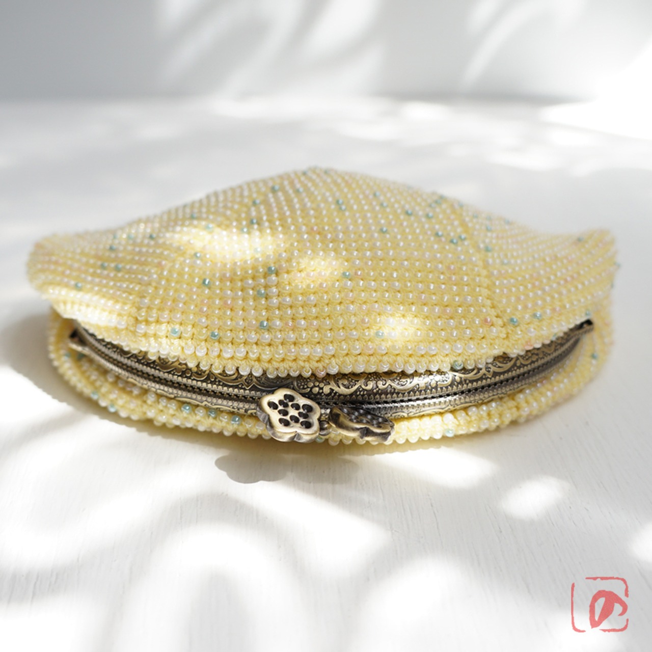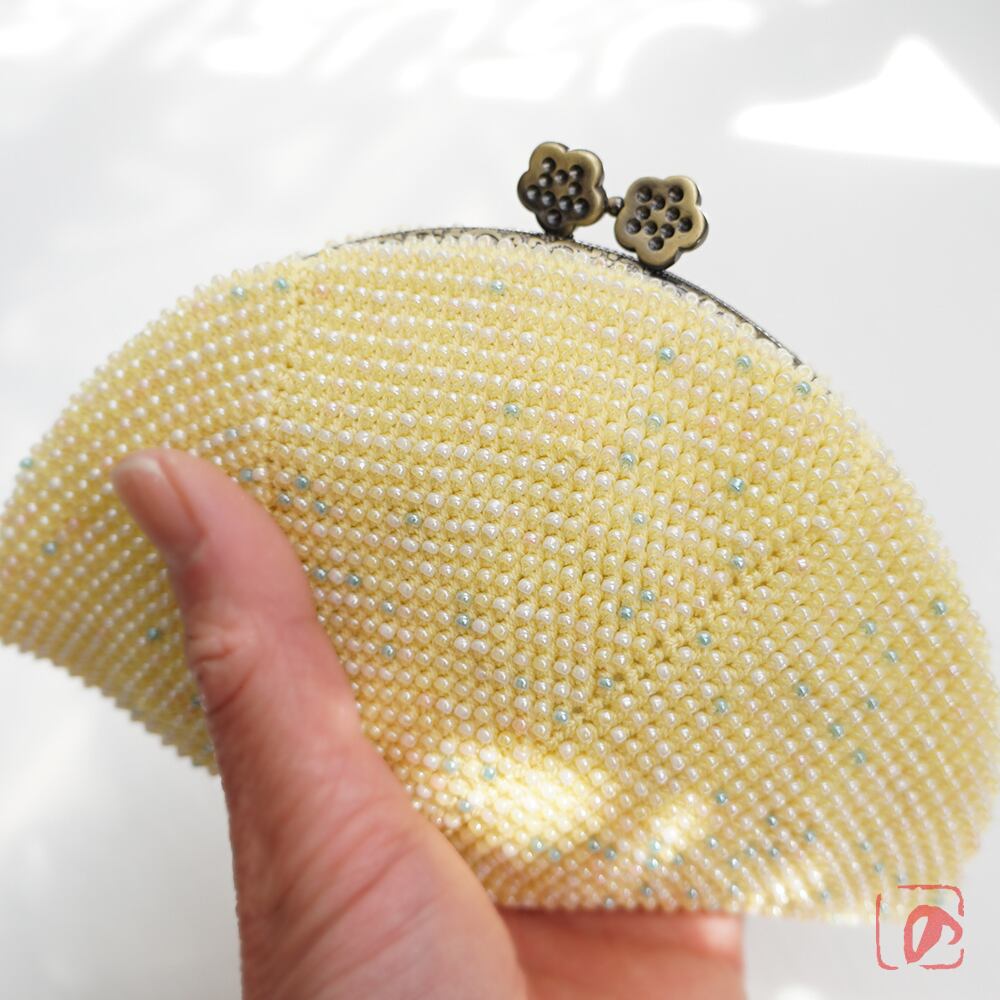 2mmの日本製シードビーズをひとつぶづつ全面に編み込んだ上質ながま口です。