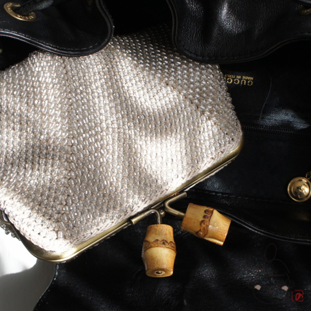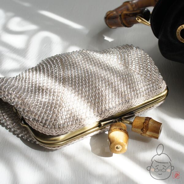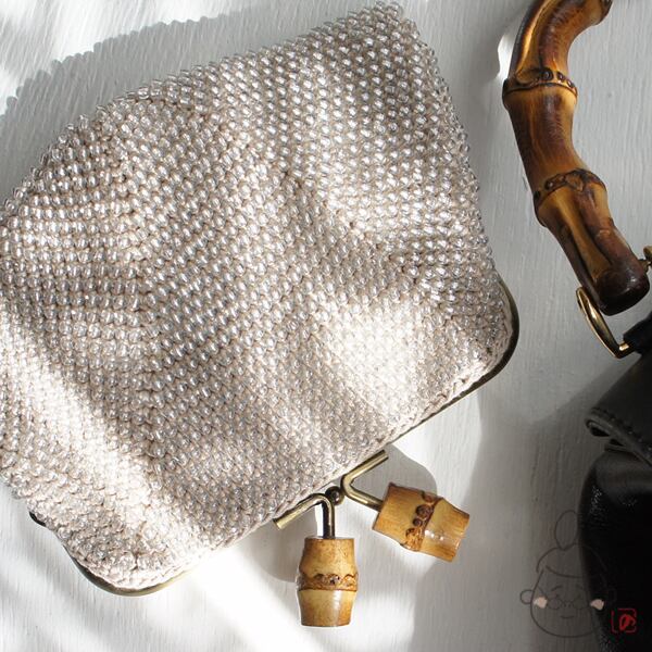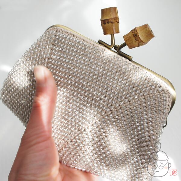 ばあば作☆☆さらに大きめ・ガラスビーズのがま口(natural bamboo・1447)