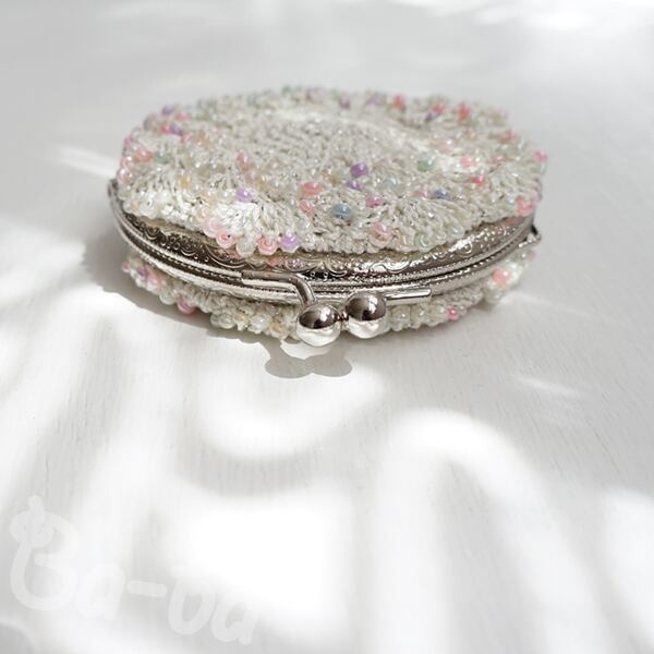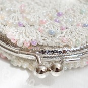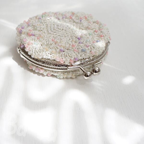 編みがま口の軽量さと、ビーズの輝きを両方取り入れた作品です。