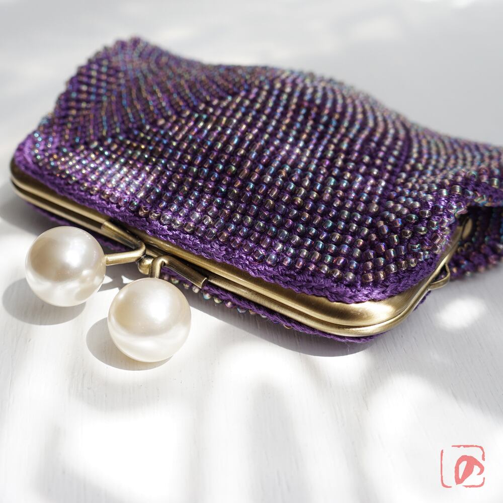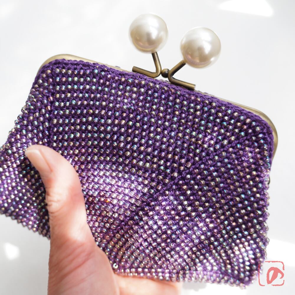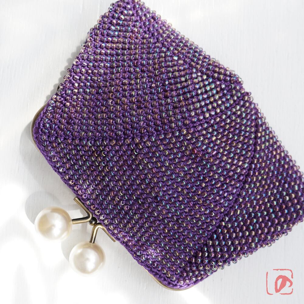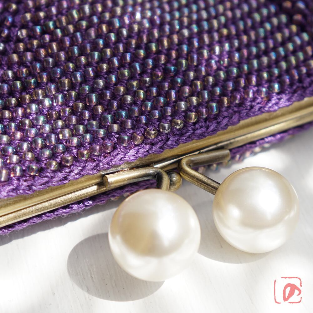 ばあば作☆さらに大きめ☆パールのスクエアがま口(violette・1457)