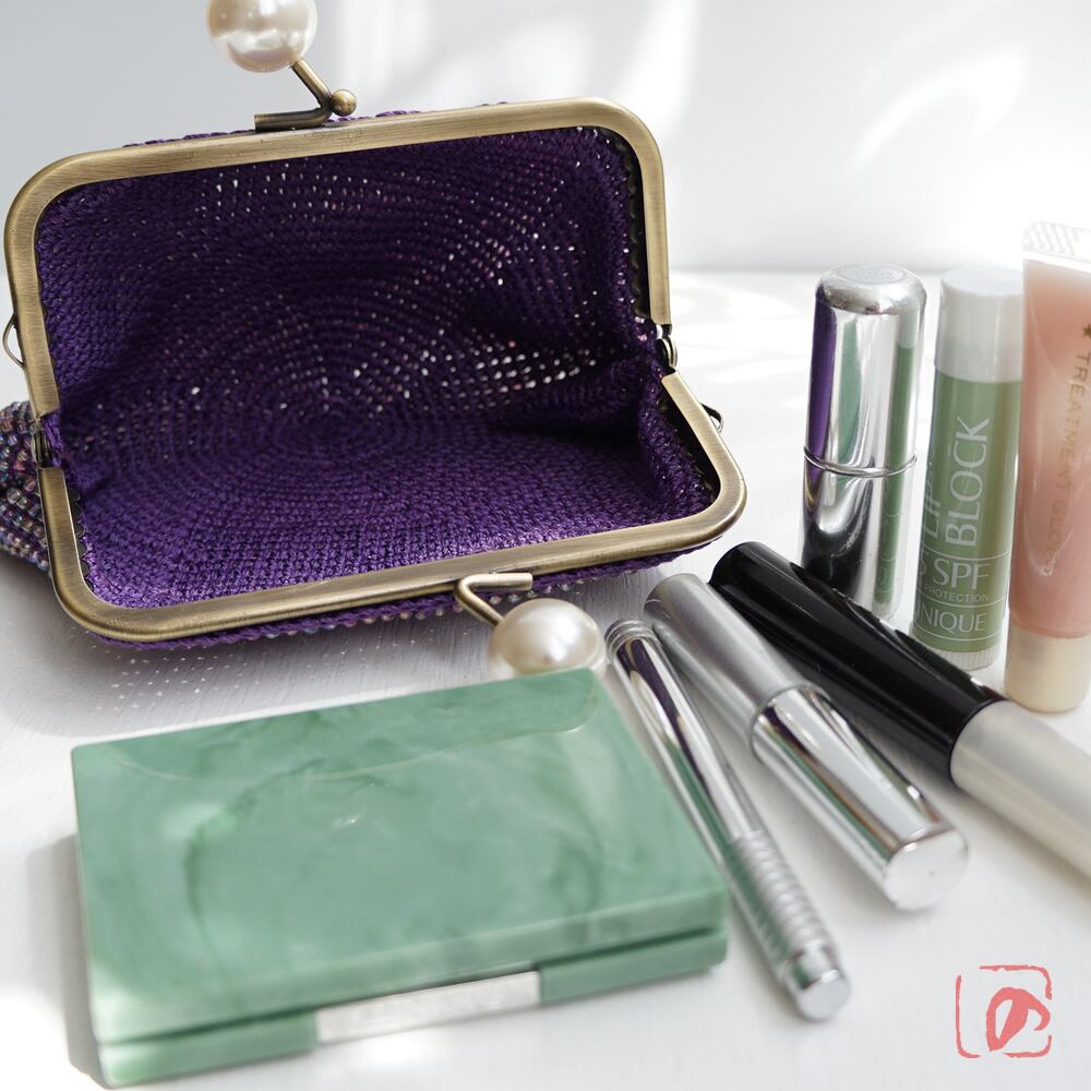 パールつまみの口金は12.5cm角形を使用し収納力バツグン!なんでもいろいろ入ります。