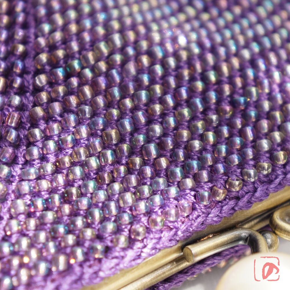 多色に輝く3mmのビーズをひとつぶづつ、全面に編み込みました。