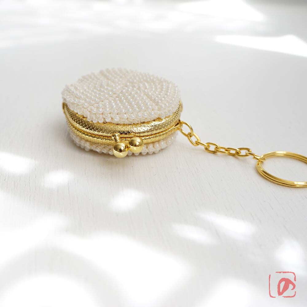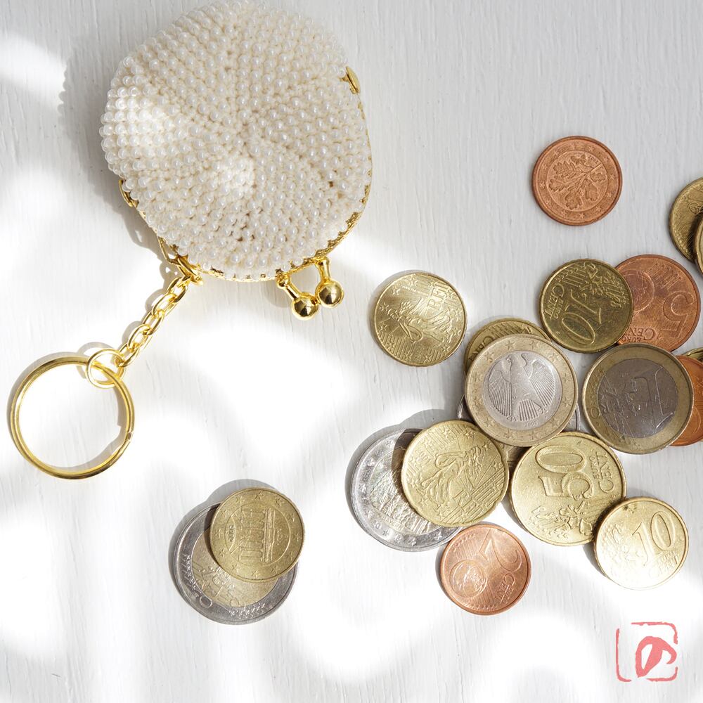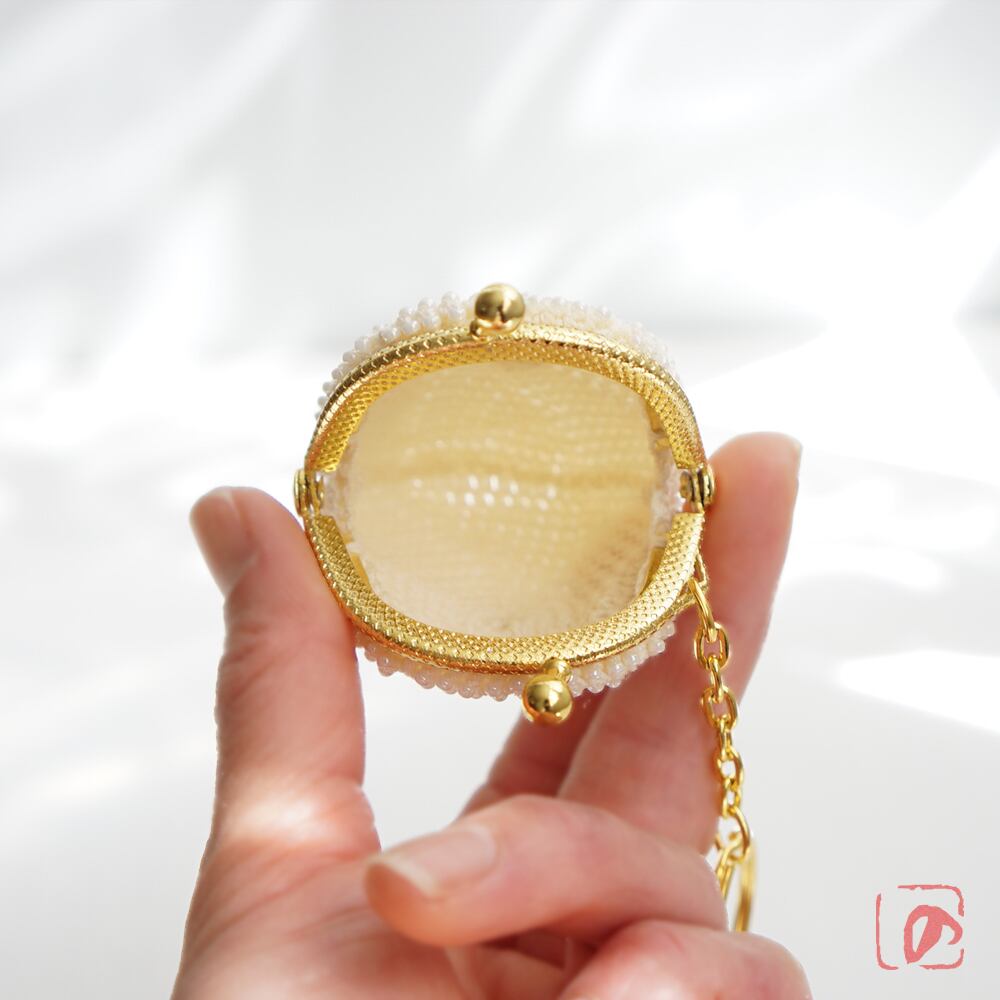 5.0cmのまぁるい口金は、リングとチェーン付きでおでかけのおともに最適です。