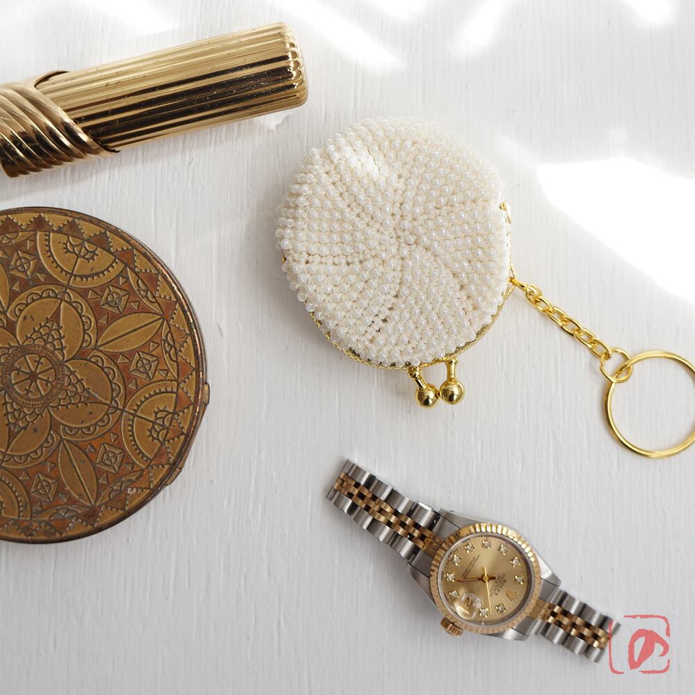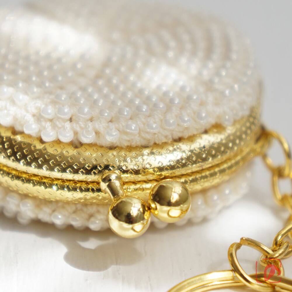 ばあば作☆シードビーズのminiminiまるがま口(crème・1464)