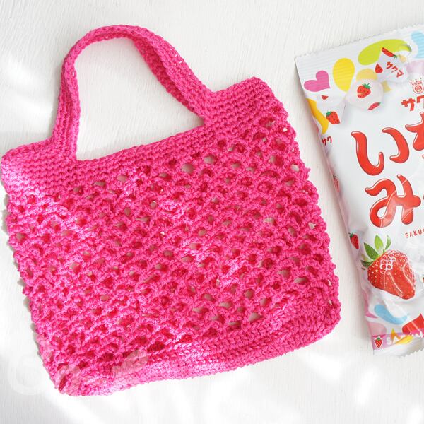 ばあば作♪ ネット編みの、すけすけ手さげバッグ(MB8)