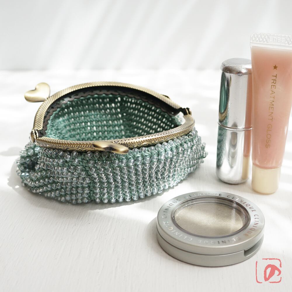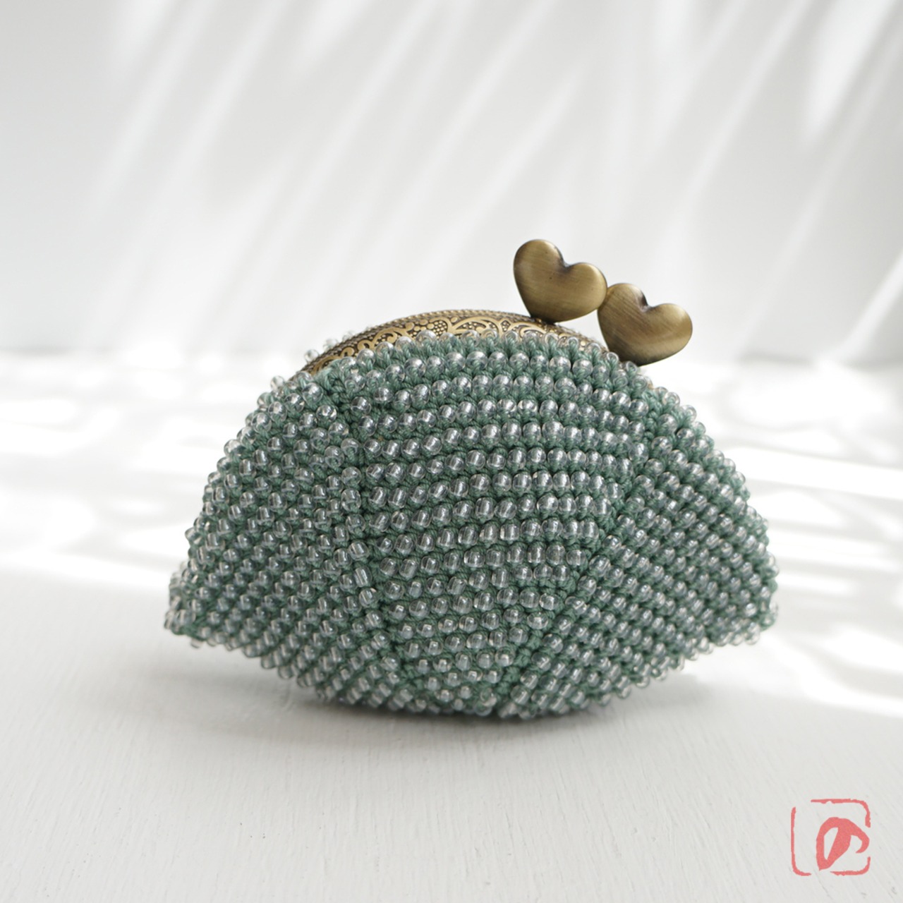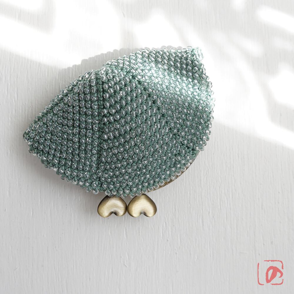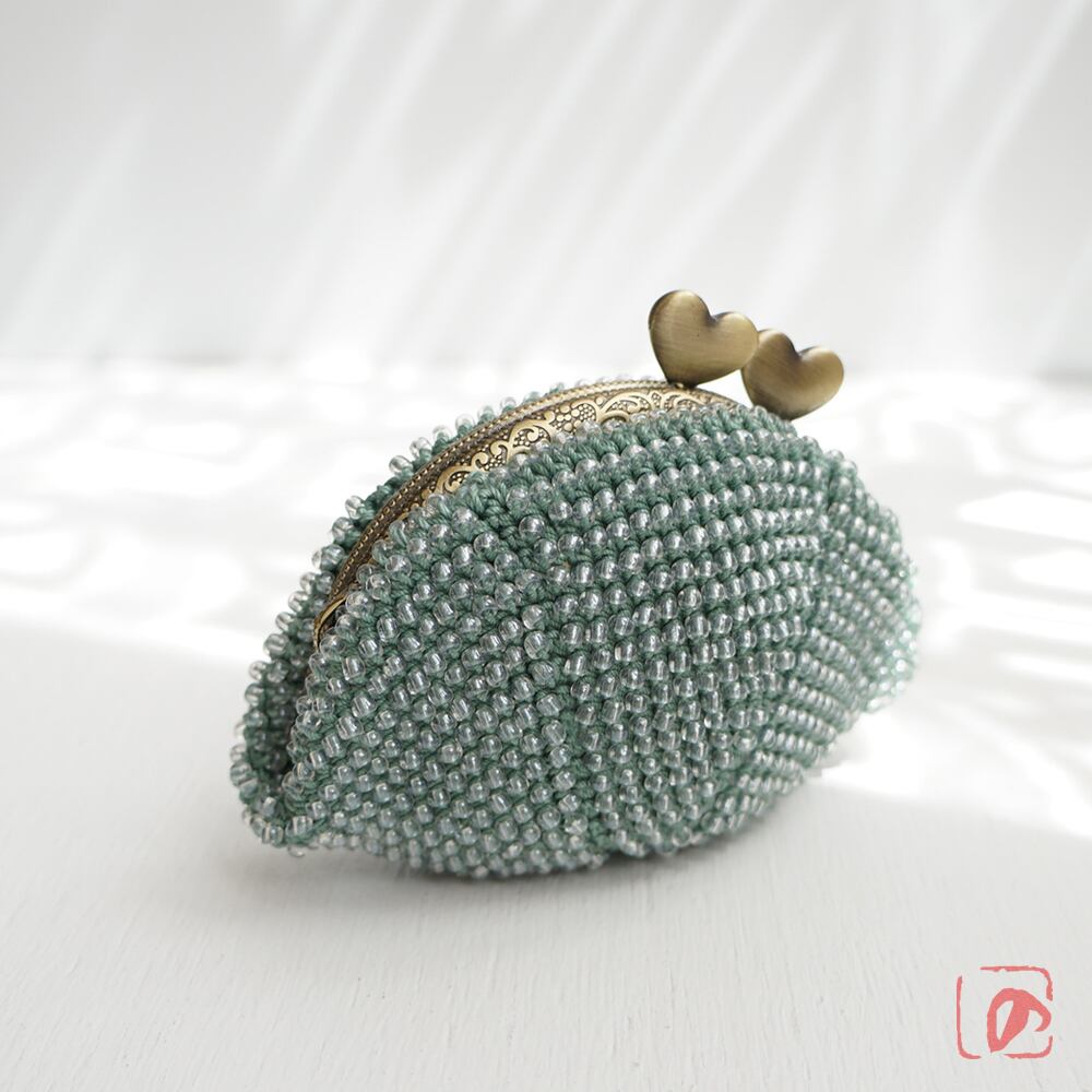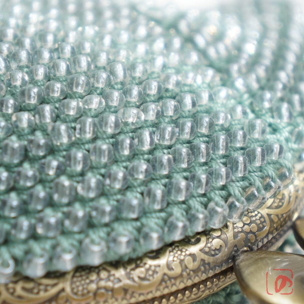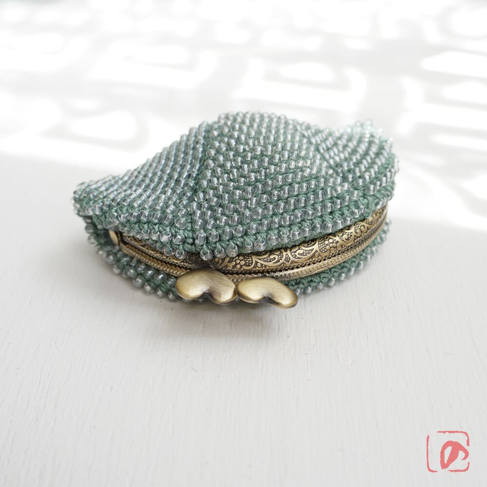 ばあば作☆☆総ガラスビーズのがま口(moss・1471)