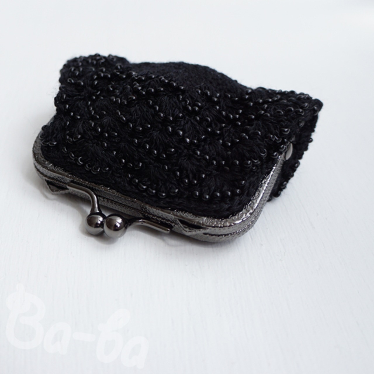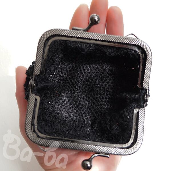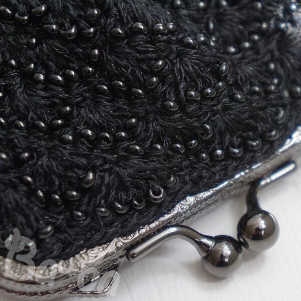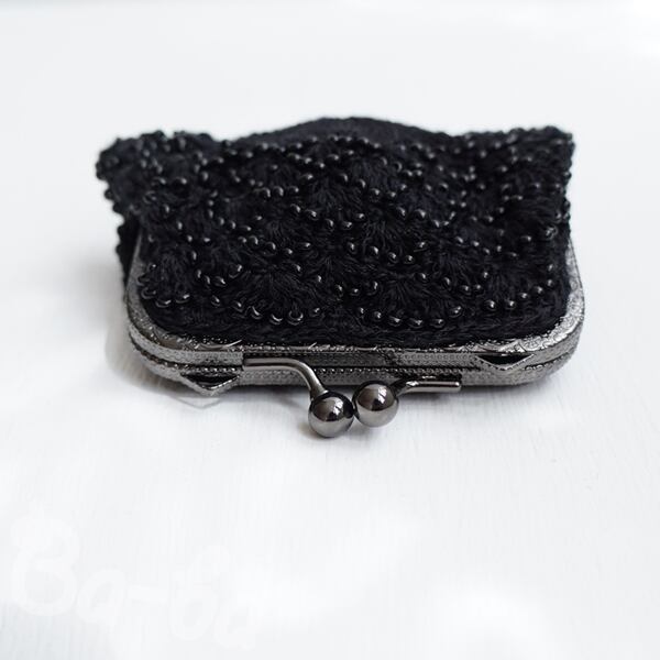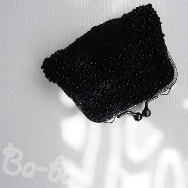 ばあば作、ビーズ入り松編みのスクエアがま口(nero・C1441)