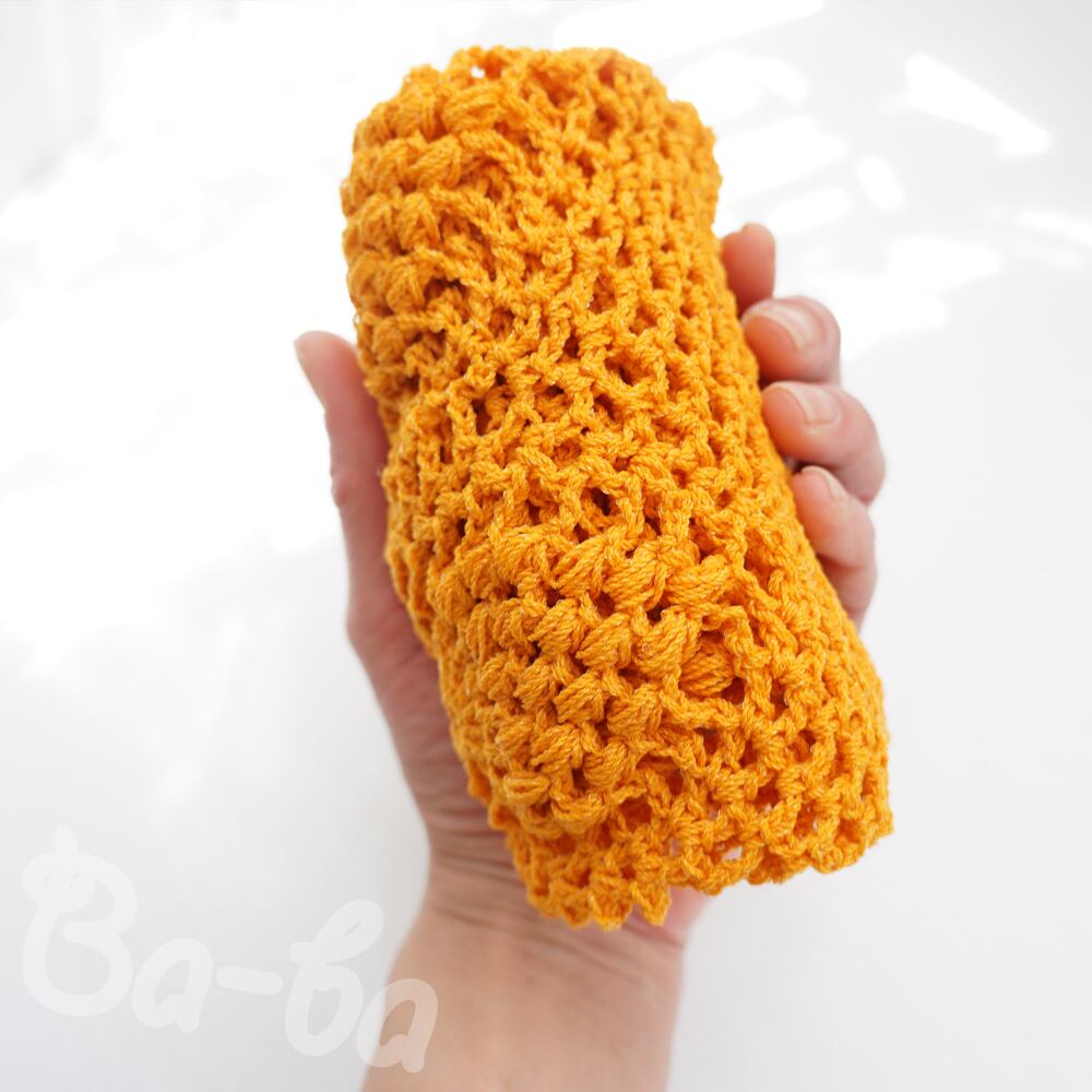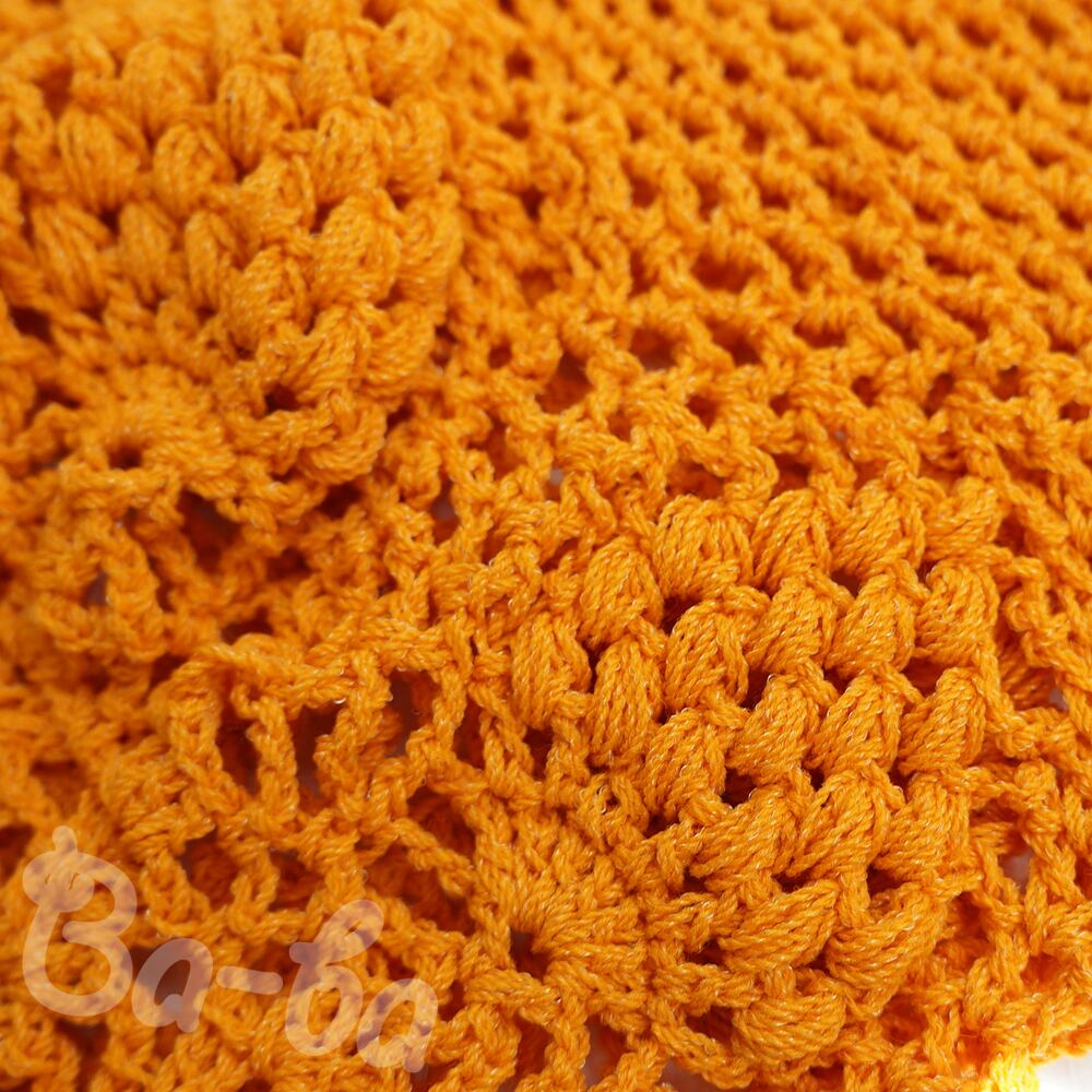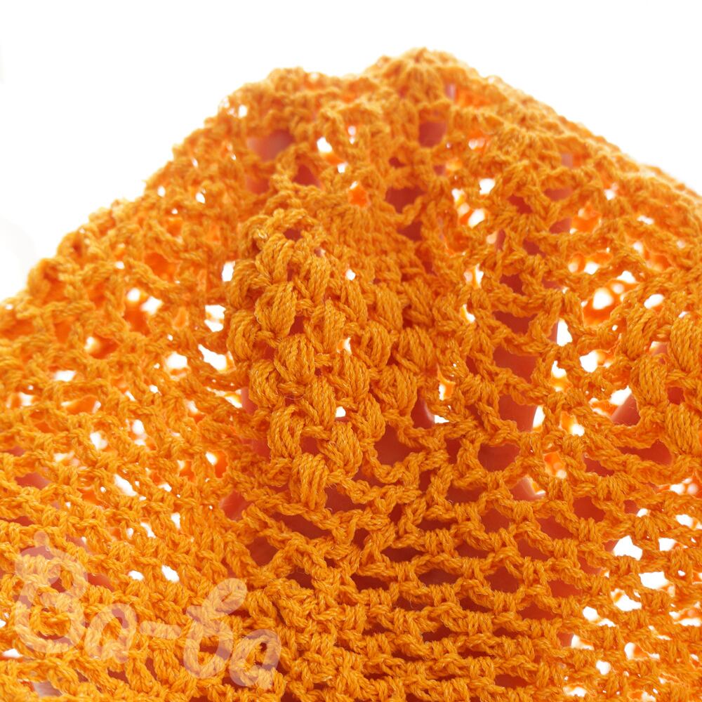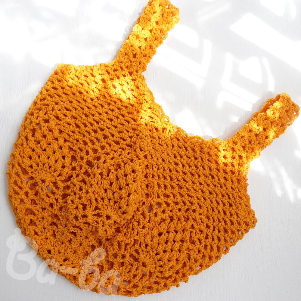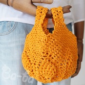 明るいオレンジのサマーヤーンを編み込んで小さな手さげ袋にしました。。