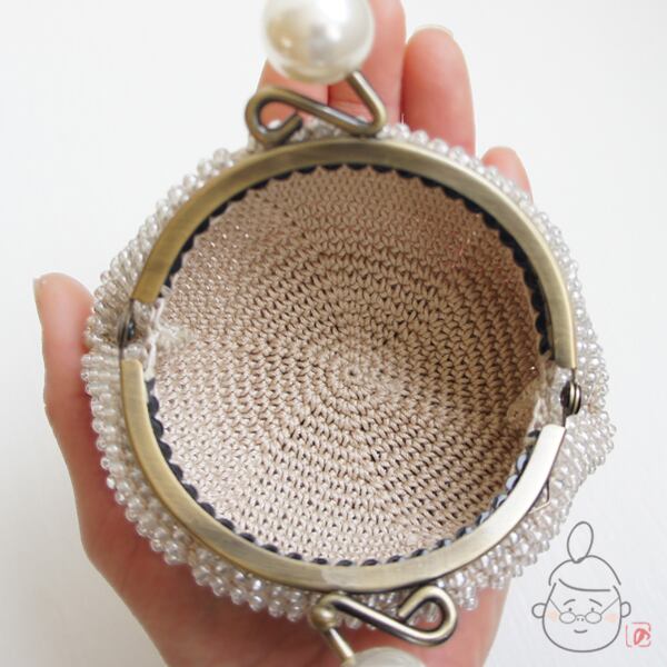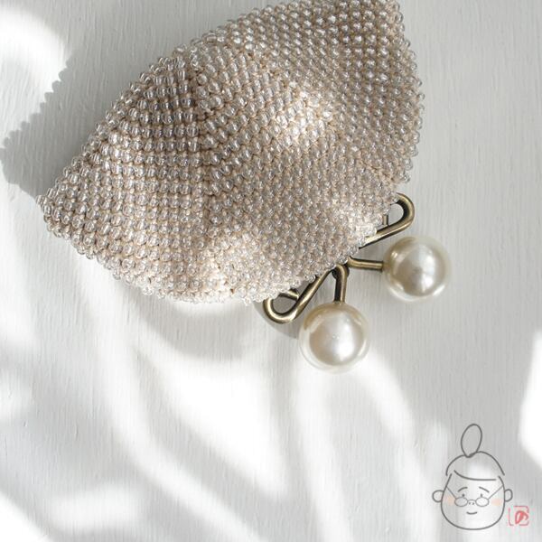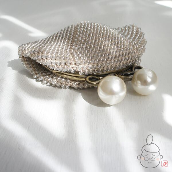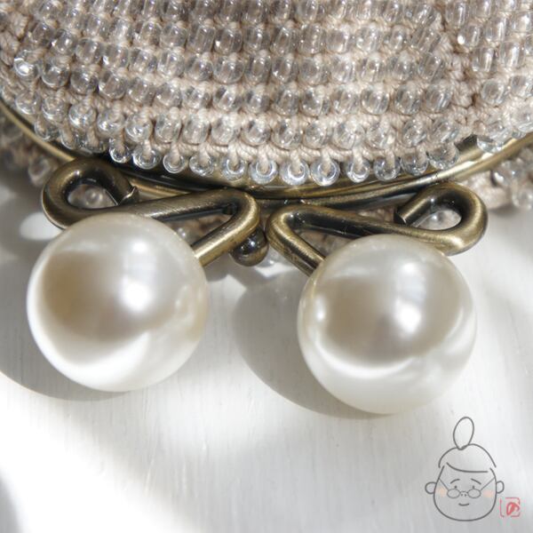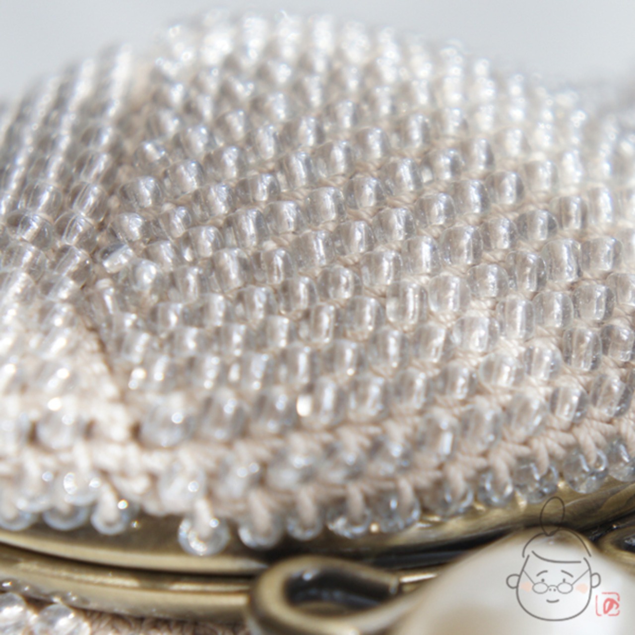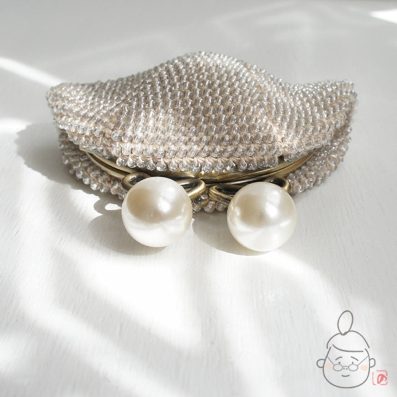 ばあば作☆☆総ガラスビーズのパールがま口(café・1443)