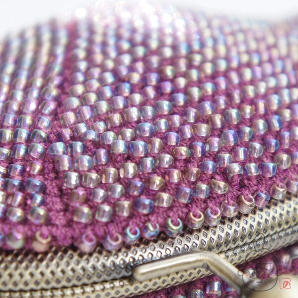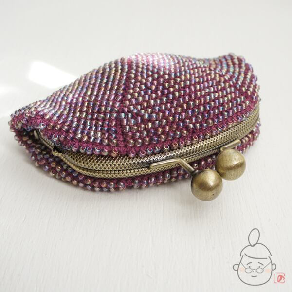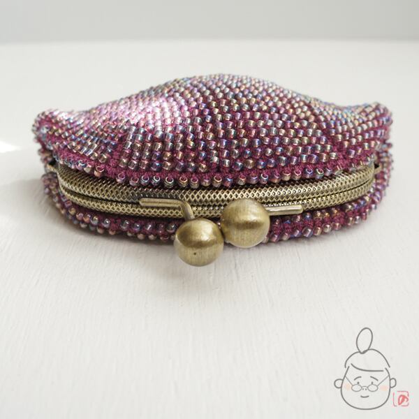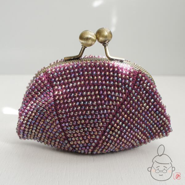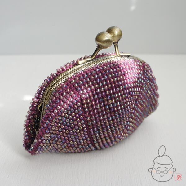 3mmのガラスビーズをひとつぶづつ全面に編み込んだ、上質ながま口です。