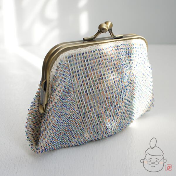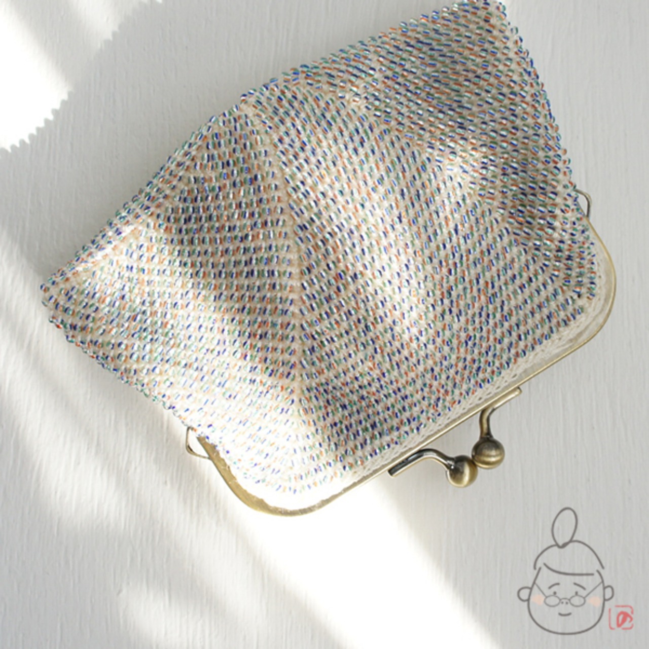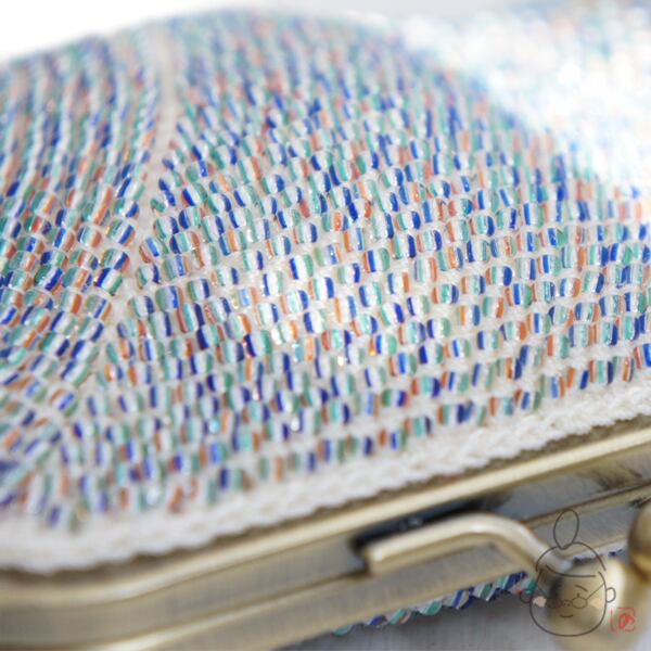 2mmのシードビーズをひとつぶづつ全面に編み込んだ、上質ながま口です。