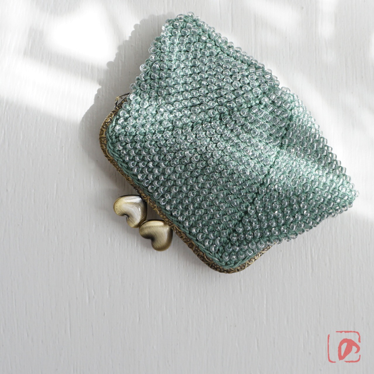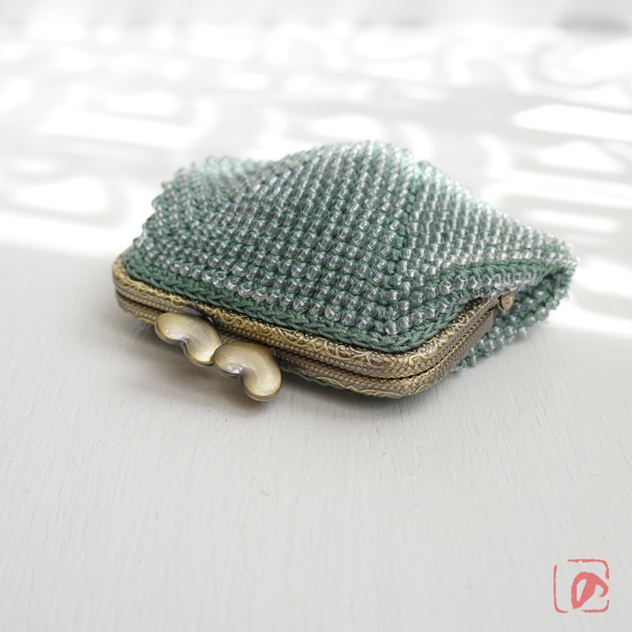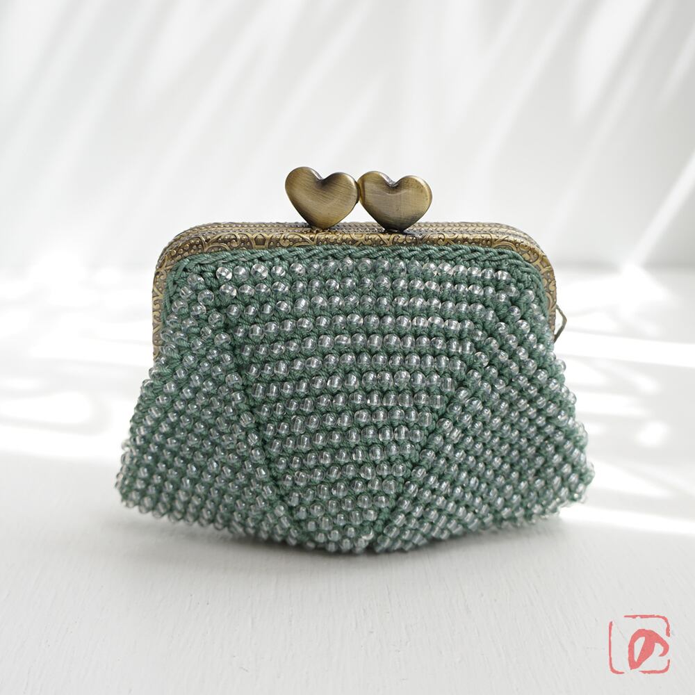 ばあば作♡♡総ガラスビーズのスクエアがま口(erba・1470)