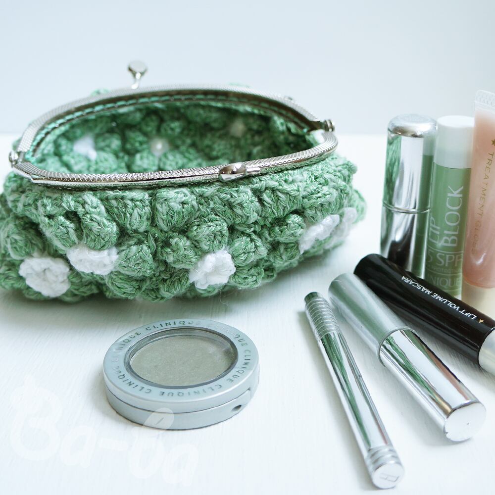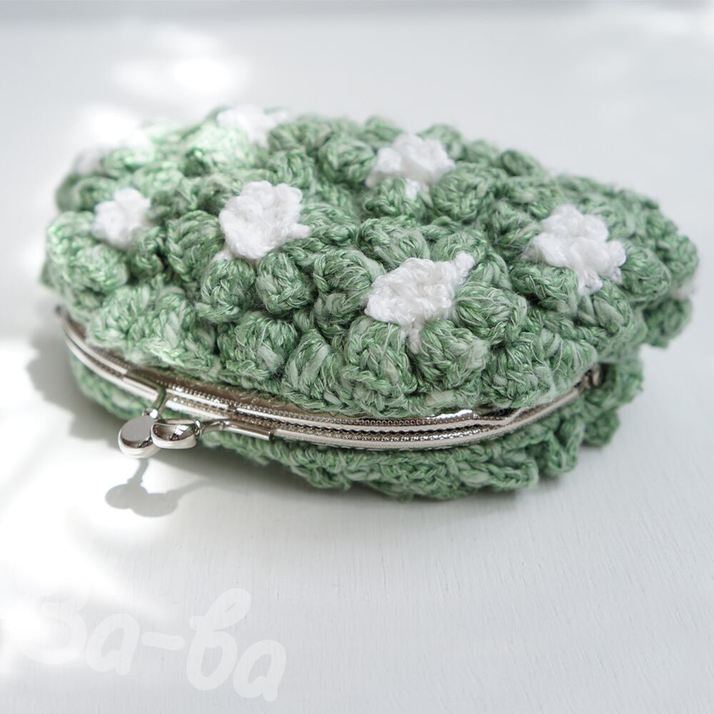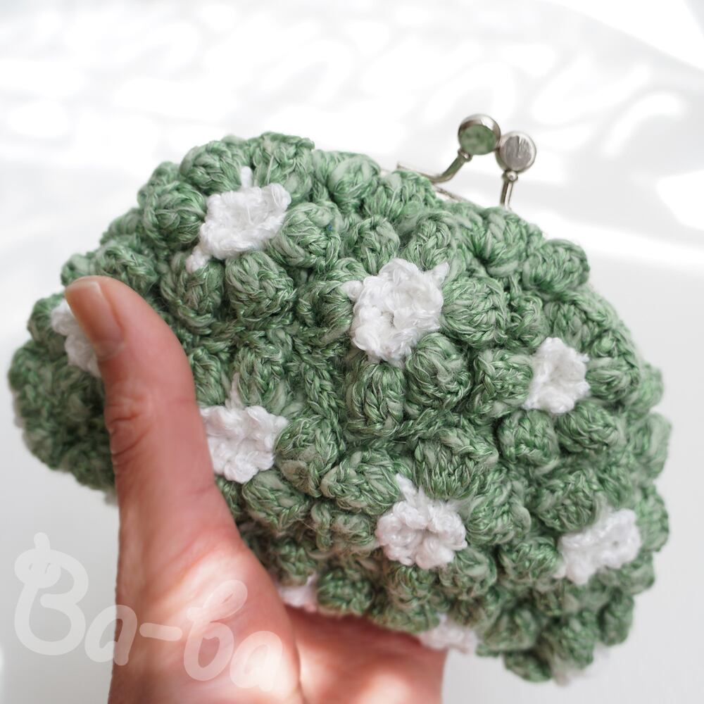 ばあば作、ポピーパフ編みのがま口(jeune・C1455)