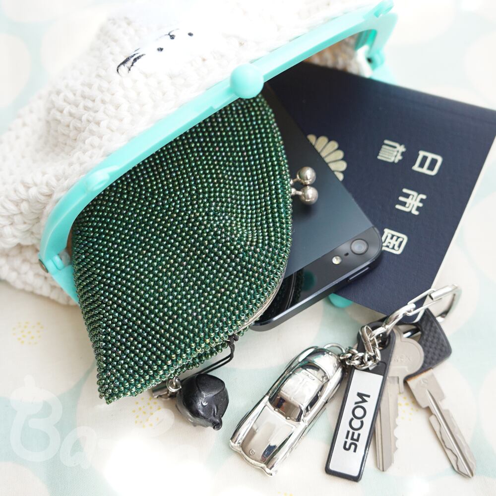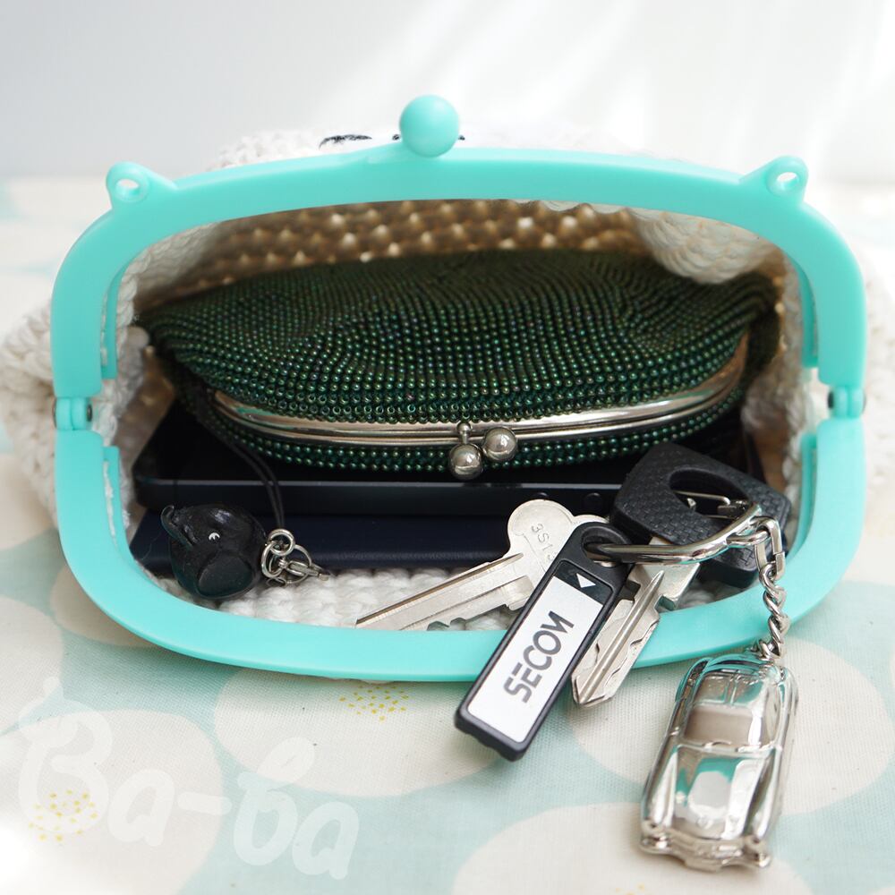 プラ口金使用で軽量、縫い付け口金で丈夫に仕上げています。