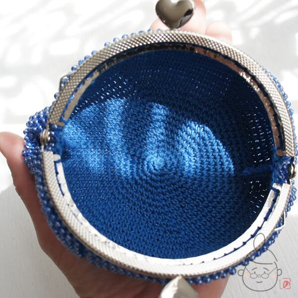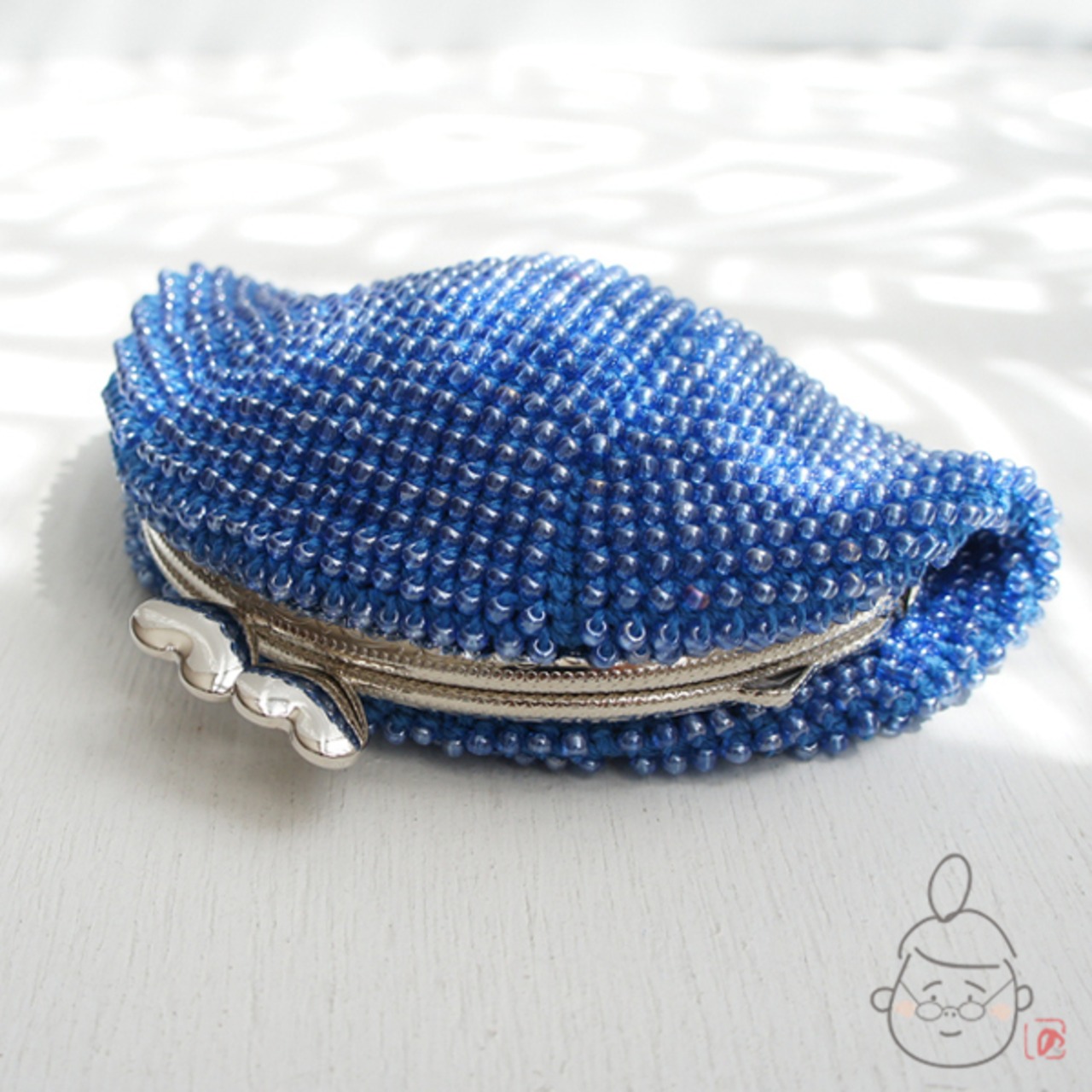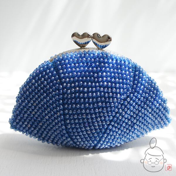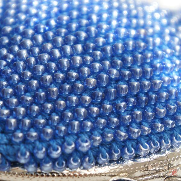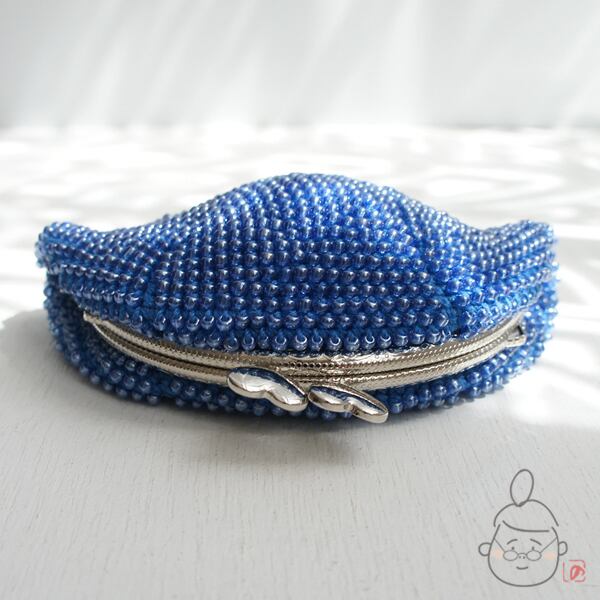 3mmのガラスビーズをひとつぶづつ全面に編み込んだ、上質ながま口です。
