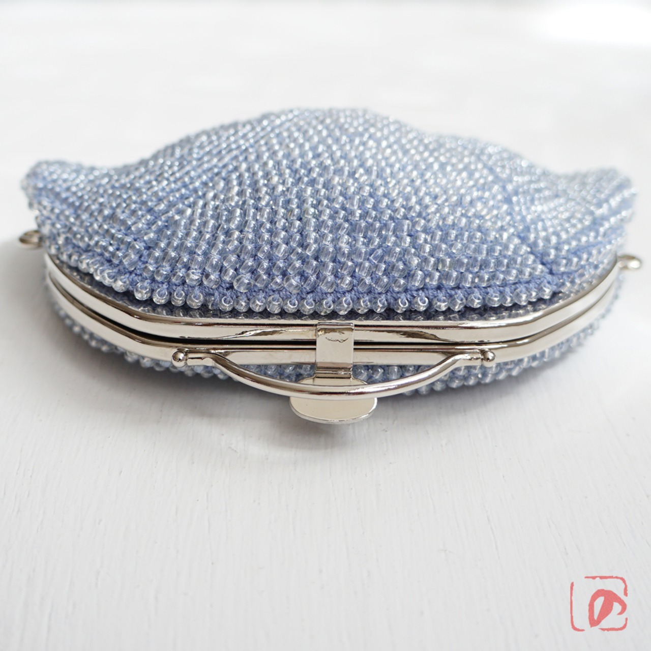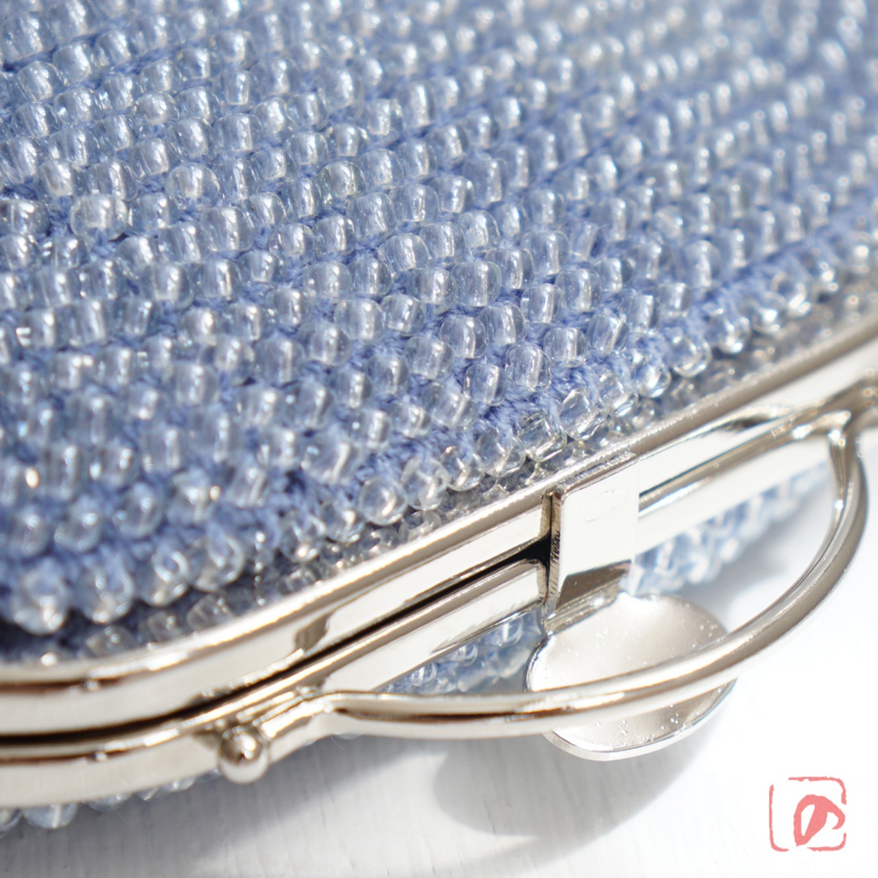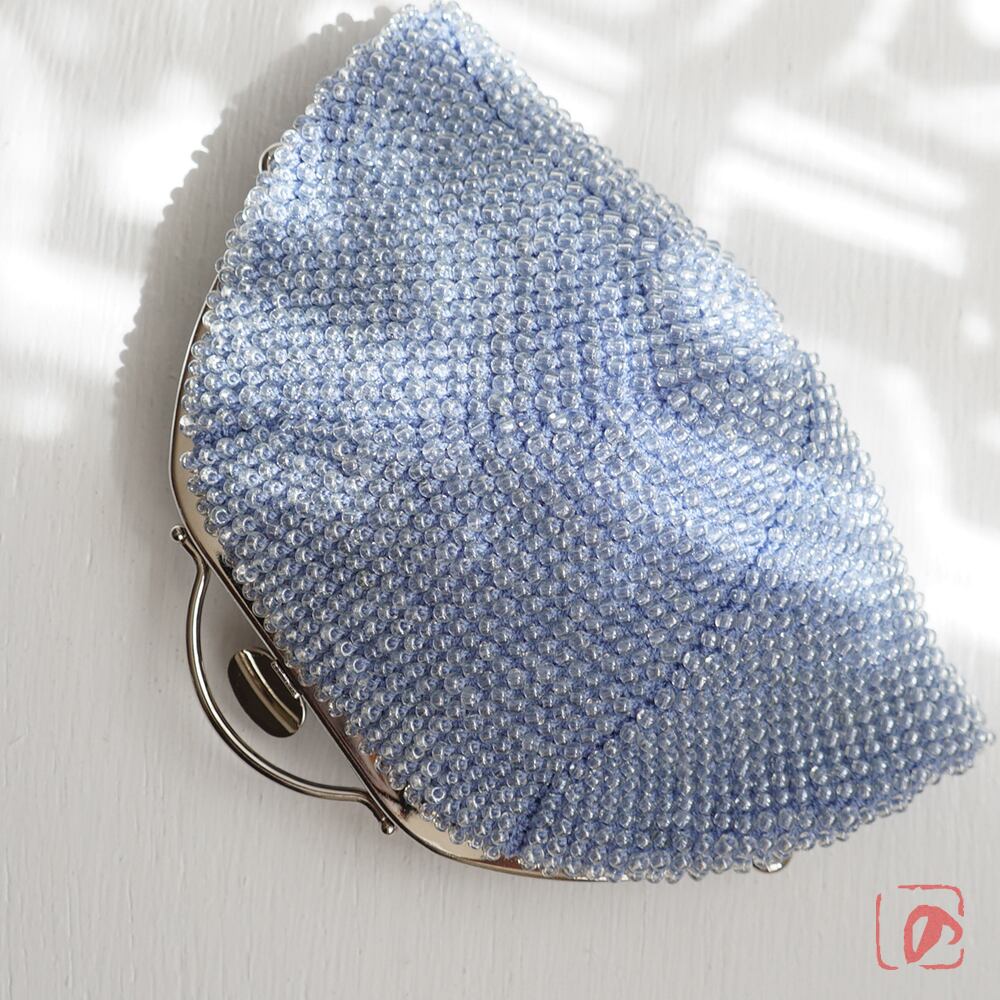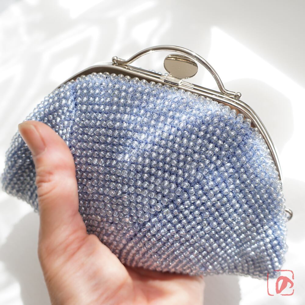 3mmのガラスビーズをひとつぶづつ、全面に編み込んでポーチに仕上げました。